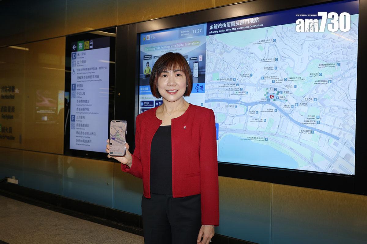 訪港旅客或人生路不熟,港鐵金鐘站大堂的街道圖近日改以電子屏幕形式顯示,並加入觸控互動功能,乘客揀選目的地後街道圖便會彈出位置及預計步行時間等資訊,又設有二維碼供乘客掃描,以打開地圖程式在離站後繼續導航至目的地。港鐵將視乎電子街道圖使用量和乘客反應,擴展至其他遊客較多的車站。