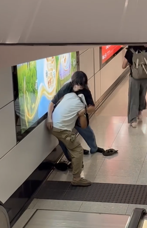 返回 本地 2025-10-04 16:32:33 港鐵MMA兩男摔角式出動頭槌 路人指「香港人好大壓力」 分享: 港鐵MMA兩男摔角式出動頭槌(Threads影片截圖) 港鐵紅磡站近日有兩名男子「肉搏」,有經過的途人被嚇怕,急行閃避。 鞋子及眼鏡飛脫到地上 由網民拍攝的短片可見,兩名男子在紅磡站下行扶手電梯口前打架,黑衣男子似乎壓制著白衣男子,白衣男子則極力出動頭槌掙扎。兩人打至身上的鞋子、眼鏡都飛脫到地上。經過的乘客都不禁看看兩人,但不見有人做「和事佬」。上載影片至社交平台Threads的網民則指「香港人好大壓力」。 ADVERTISEMENT