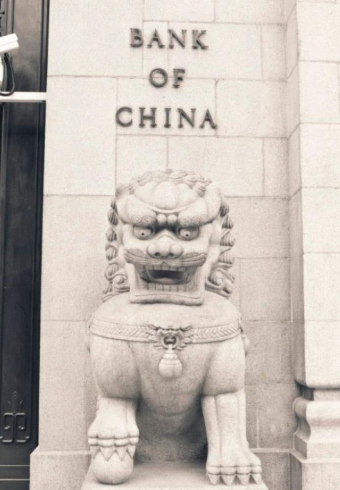 與滙豐總行大樓一街之隔的中國銀行大廈(舊中銀總行)門外亦有擺放石獅子。其中,位於德輔道中正門前是一對中國傳統的雌雄石獅。