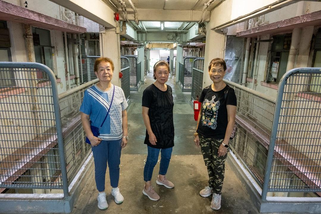(左起)霞姐、嫻姐及琼姐分享漁光村生活的點滴。
