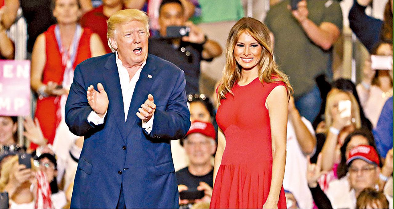 特朗普前日與妻子梅拉尼婭在佛州出席支持者活動,繼續炮轟美國傳媒。(美聯社)