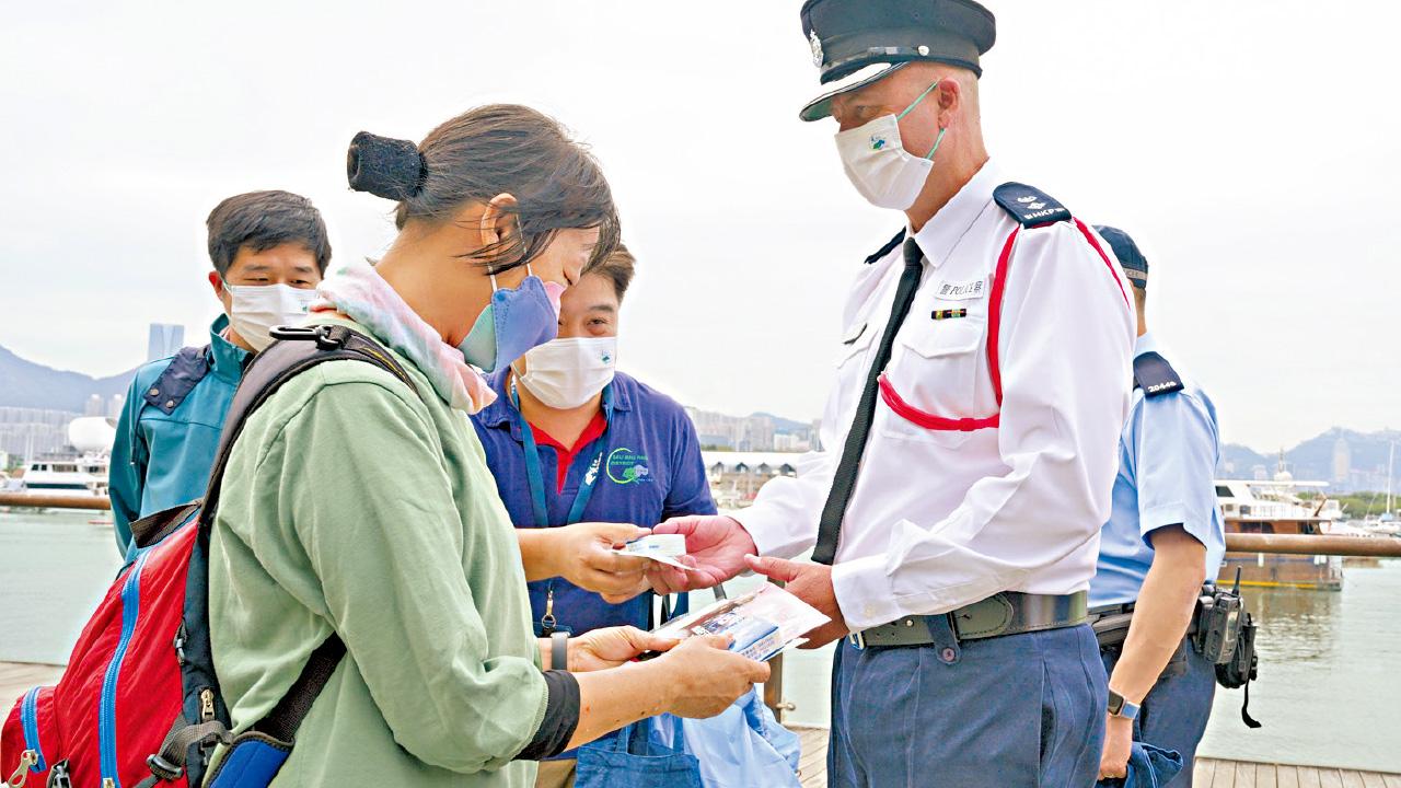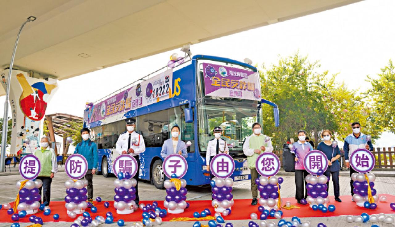 警方在海上的反詐騙宣傳。(陳奕釗攝)