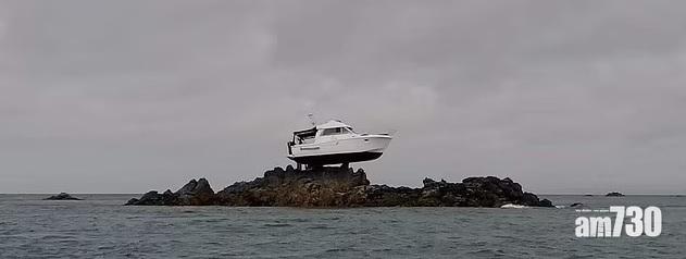 遊艇穩固地擱在礁石上。(互聯網)
