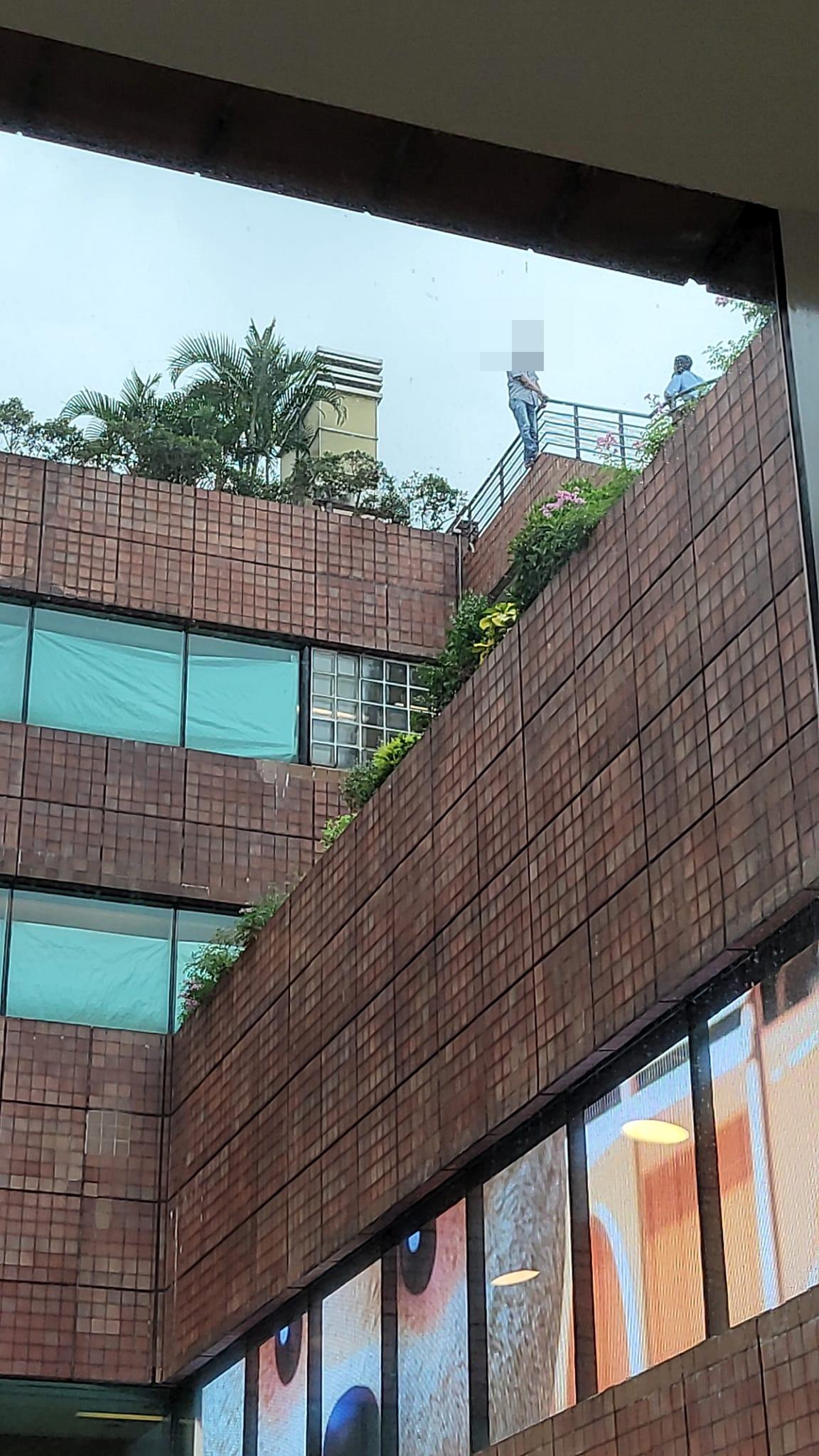 今日(27日)下午3時37分,該名男子跨出沙田新城市廣場三樓欄杆,危站企跳,有途人發現報警,同時好言相勸。警方及消防接報後趕至現場戒備,正在向男子進行游說。