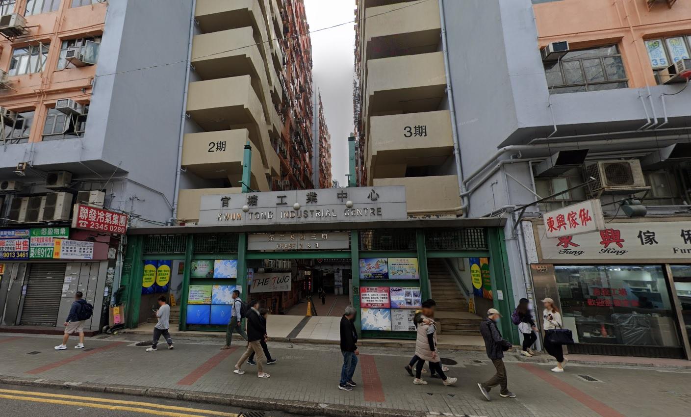 珍惜生命|觀塘男子官塘工業中心墮樓,當場身亡。(Google地圖截圖)
