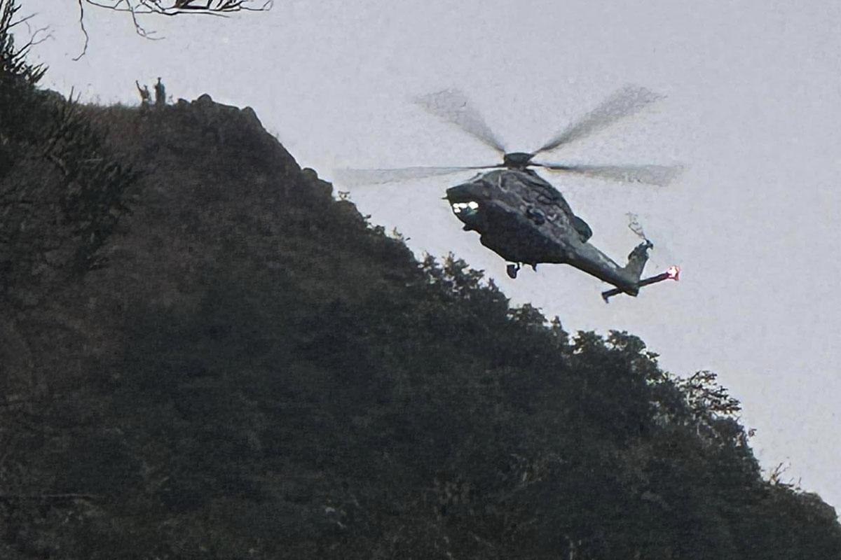 直升機在飛鵝山一帶盤旋搜救。(網民Carol Law@FB群組「黃大仙區友」)
