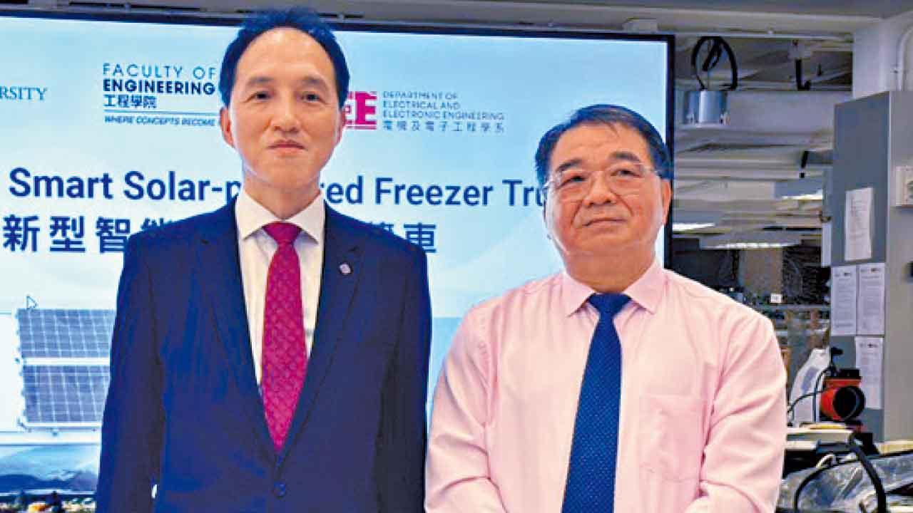 理大電機及電子工程學系教授鄭家偉所帶領團隊,獲政府創新科技署創新及科技基金資助,作「智能冷藏車發展計劃——電力、太陽能和智能物流和存儲方法」的研究,經過一年研發出一輛新型智能太陽能冷藏車。該車頂上配備可擴展的太陽能板,行駛時由4塊太陽能板吸收陽光,停車時可擴展至8塊,由太陽能板輸入的電能會儲在車上的裝置,為車上冷藏系統提供附加動力來源。車上亦配備鋰離子電池,可連接一般電動車充電設施充電。當鄭家偉介紹時更稱,車上冷藏系統可提供低至攝氏零下45度的冷藏溫度,當電力發動關閉後,儲電裝置仍如常運作,令車變成流動冷藏庫,解決本港冷藏庫供不應求問題。太陽能儲能裝置及電池儲滿能量後,可為車輛提供動力達4小時,並可按需要擴充電池數量和容量,提升續航能力。冷藏車可連接其他同款車輛,作充電和能量交換。