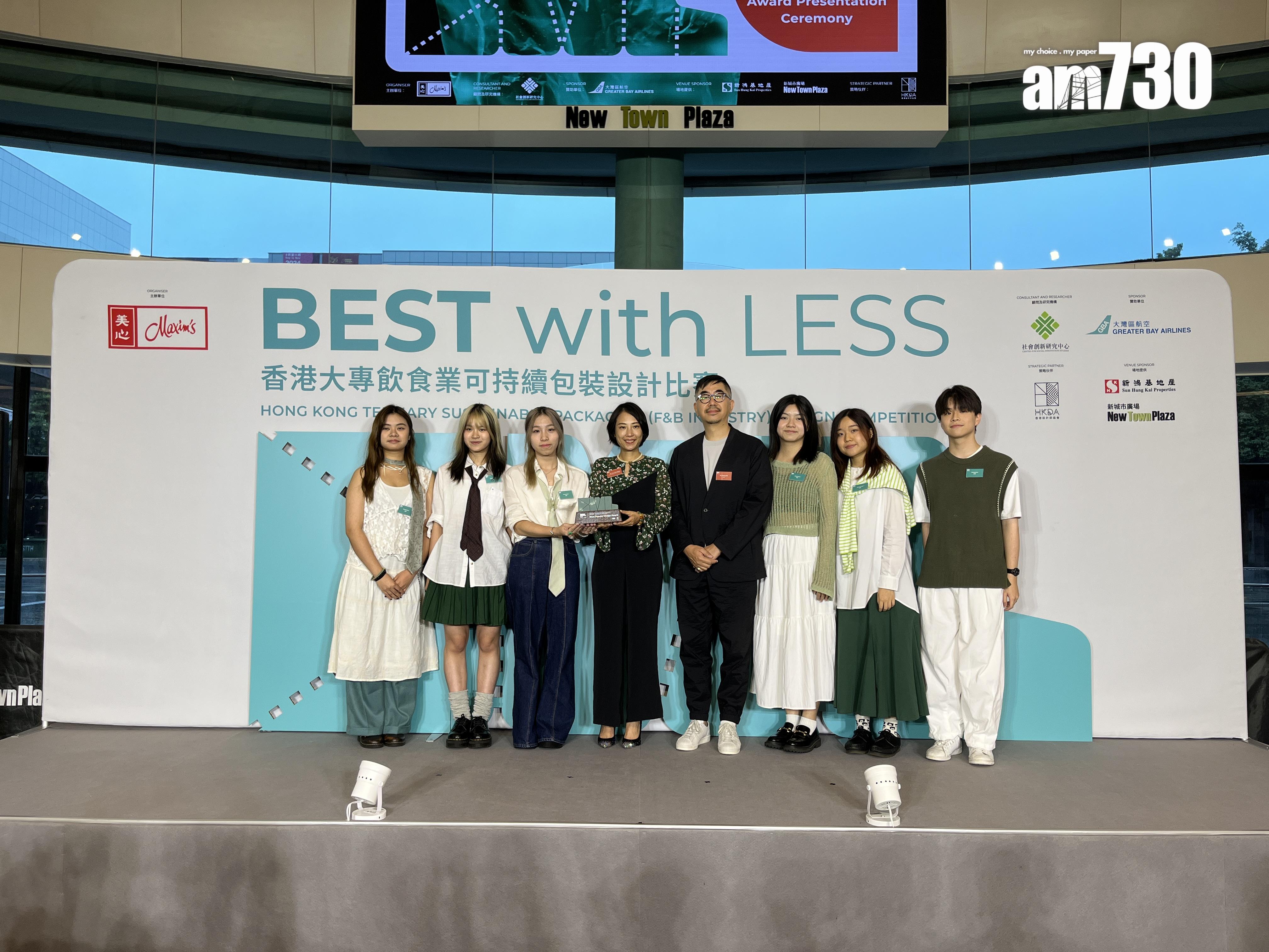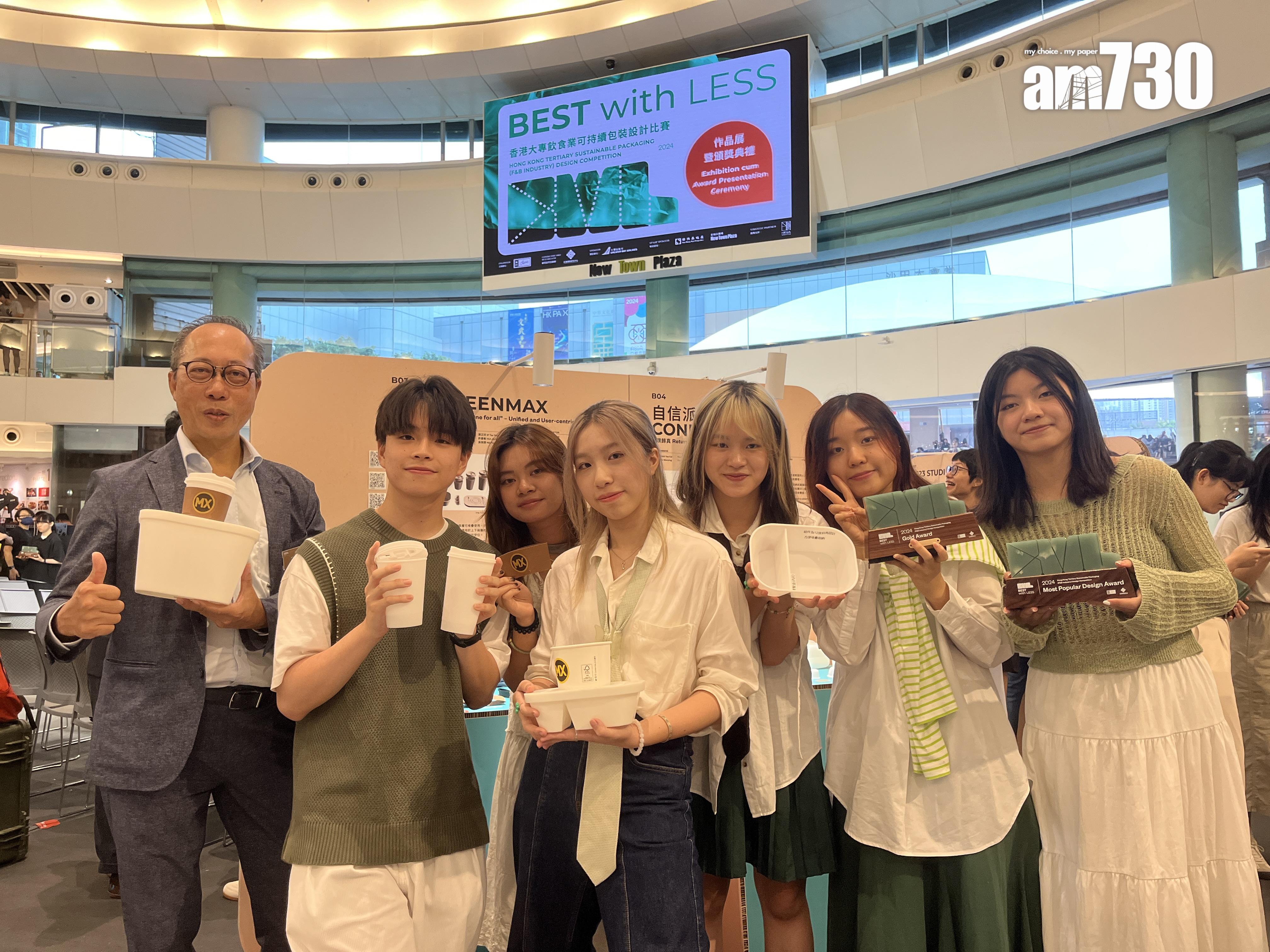 極端天氣愈見頻繁,市民須加強環保意識。理大修讀設計的二年級學生梅綽玲和5名同學組成團隊「綠饗GREENMAX」,設計具實用性及成本效益的環保餐盒,餐盒以紙和甘蔗渣作材料,盒蓋面設有可拆式餐具及圓形凹痕,讓食肆將飲料或湯碗放到凹痕,增加外賣包裝的穩定性,提供食客外帶餐飲的體驗。既環保又實用的設計在美心集團與學術機構、知名設計師及環保物料生產商等舉辦的「BEST with LESS香港大專飲食業可持續包裝設計比賽」,獲冠軍和最受歡迎設計獎。