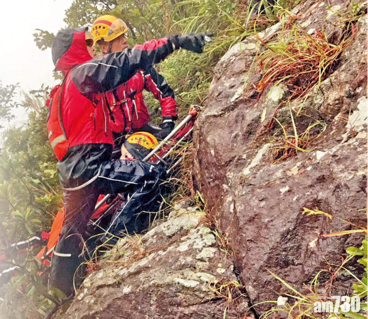 高空拯救專隊昨示範游繩將傷者抬往高位。