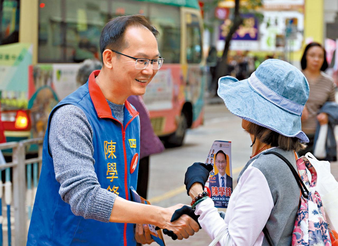 陳學鋒競逐連任港島西直選議席。(鍾式明攝)