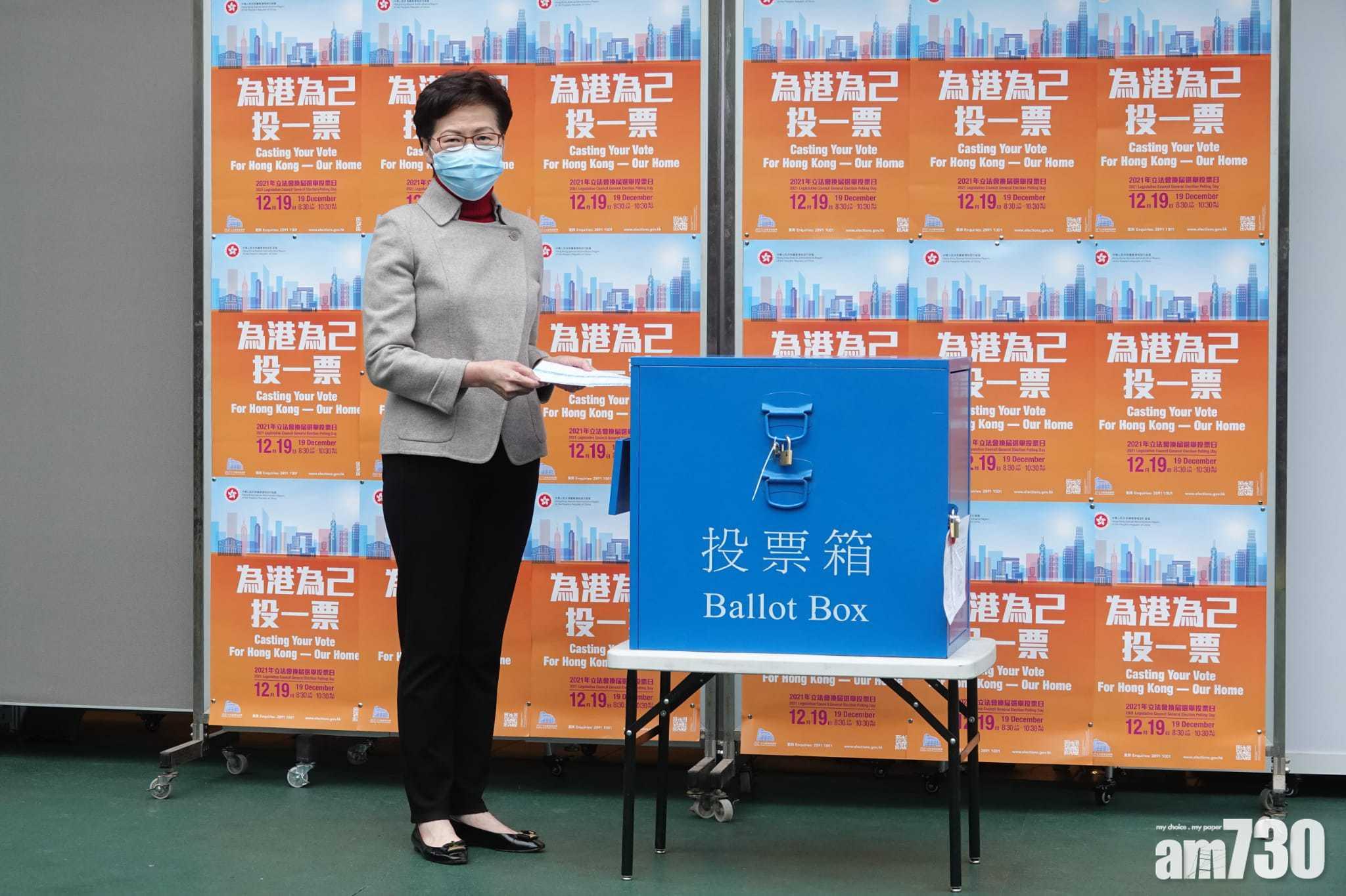 立法會選舉由今早8時半開始投票,至今晚10時半結束。特首林鄭月娥今晨約9時與丈夫到位於高主教書院的票站投票,她呼籲全港選民盡公民責任,為香港未來投重要一票。她指,今屆立法會選舉作出不少便民措施,例如為有需要人士設「關愛隊」、增加派票櫃枱等,不過沒有為投票率訂目標,並呼籲社會不必過份解讀投票率。