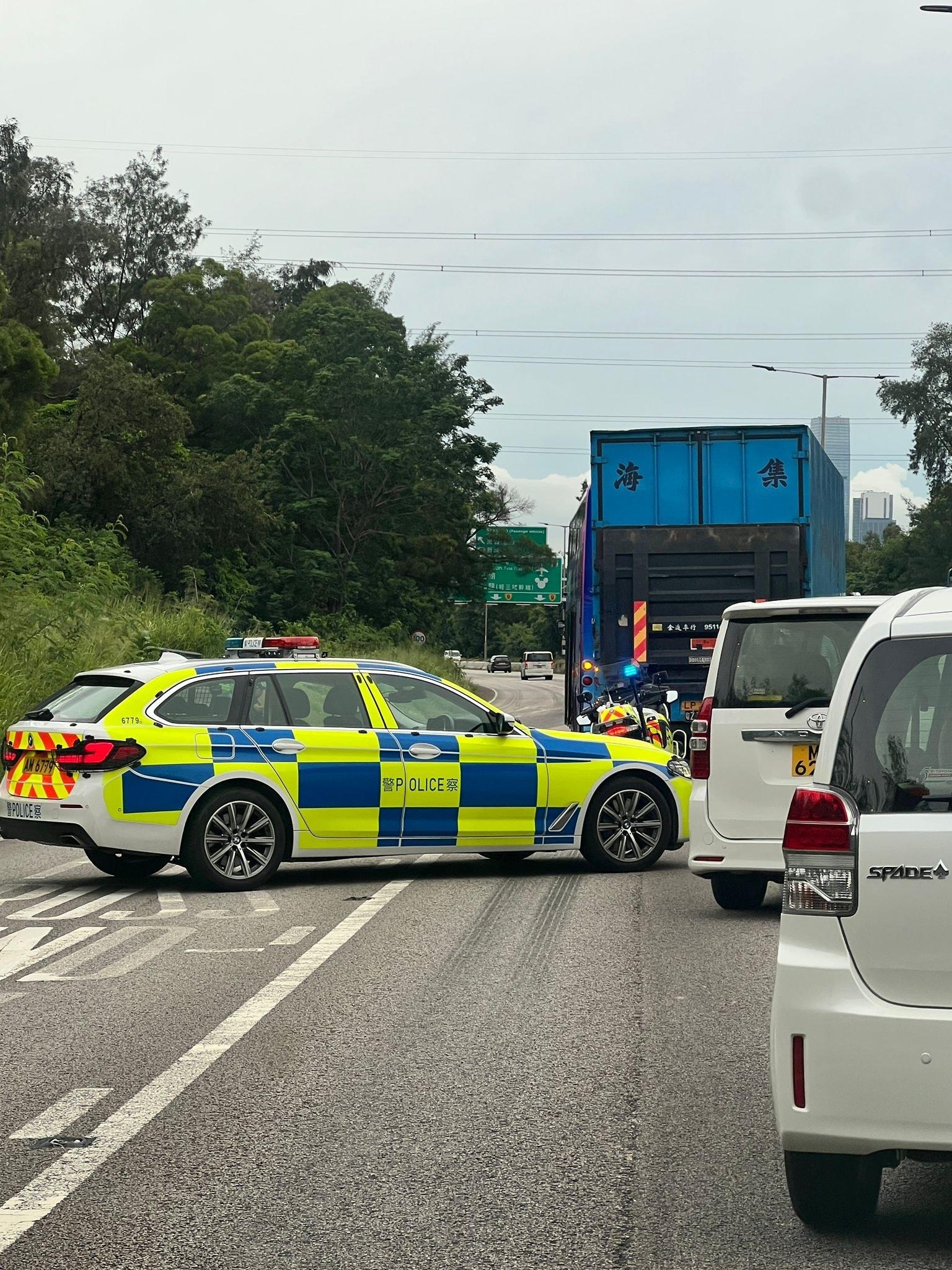 粉嶺公路九巴貨車相撞最少釀6傷,往元朗部份行車線封閉。(馬路的事 (即時交通資訊台))