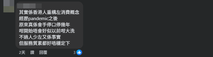 對於香港飲食業及人人和平面對的挑戰,引起網民討論。對於飲食業的挑戰,網民紛紛表示,「其實主要係疫情後,香港人習慣改變左」、「香港人重構左消費概念」、「問題係香港無晒夜生活,以前可以喺條街度行到1、2點,而家8點後都唔知做乜」。有網民打氣並表示,「已經行動上支持,個個禮拜都嚟」、「時時都有去幫襯,加油」。