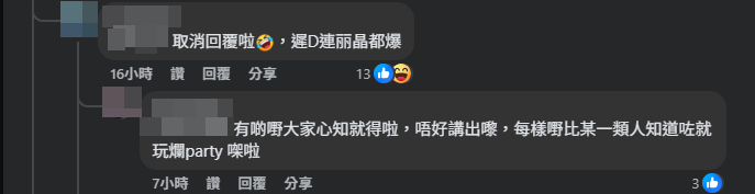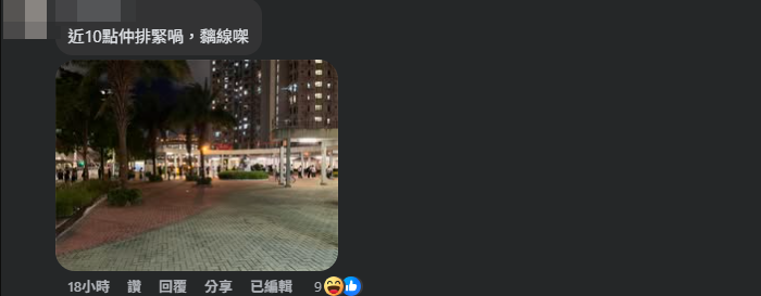 對於晴朗商場自提點大排長龍,有網民則表示可以考慮附近麗晶花園的自提點並表示,「去完(麗晶花園)取貨回來仲見到同一堆人喺度排緊隊。」。不過,有網民則表示,「靜靜地啦,我唔想麗晶都爆埋啊」、「取消回覆啦,遲D(啲)連麗晶都爆」、「有啲嘢大家心知就得啦,唔好講出嚟」。