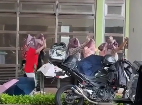由網民上載至社交平台Threads的圖片可見,幾名「大媽」頭上套著同款的深紫色環保袋,環保袋上寫著「友愛共融」。「大媽」們仲特意在環保袋上開了兩個洞,以露出雙眼方便看路。有另一網民在Facebook上載片段,「大媽」頭套著環保袋外,腰間還掛著一串樹葉,高舉雙手跳舞,上載影片者問「水泉澳呢班人係度做緊咩?」有網民問「係咪邪教嚟㗎?」