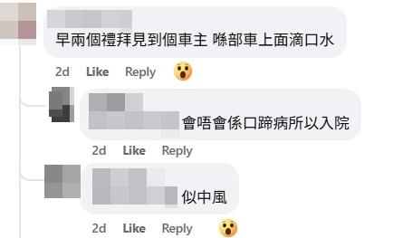 另外有網民稱,「早兩個禮拜見到車主,喺車上面滴口水」。