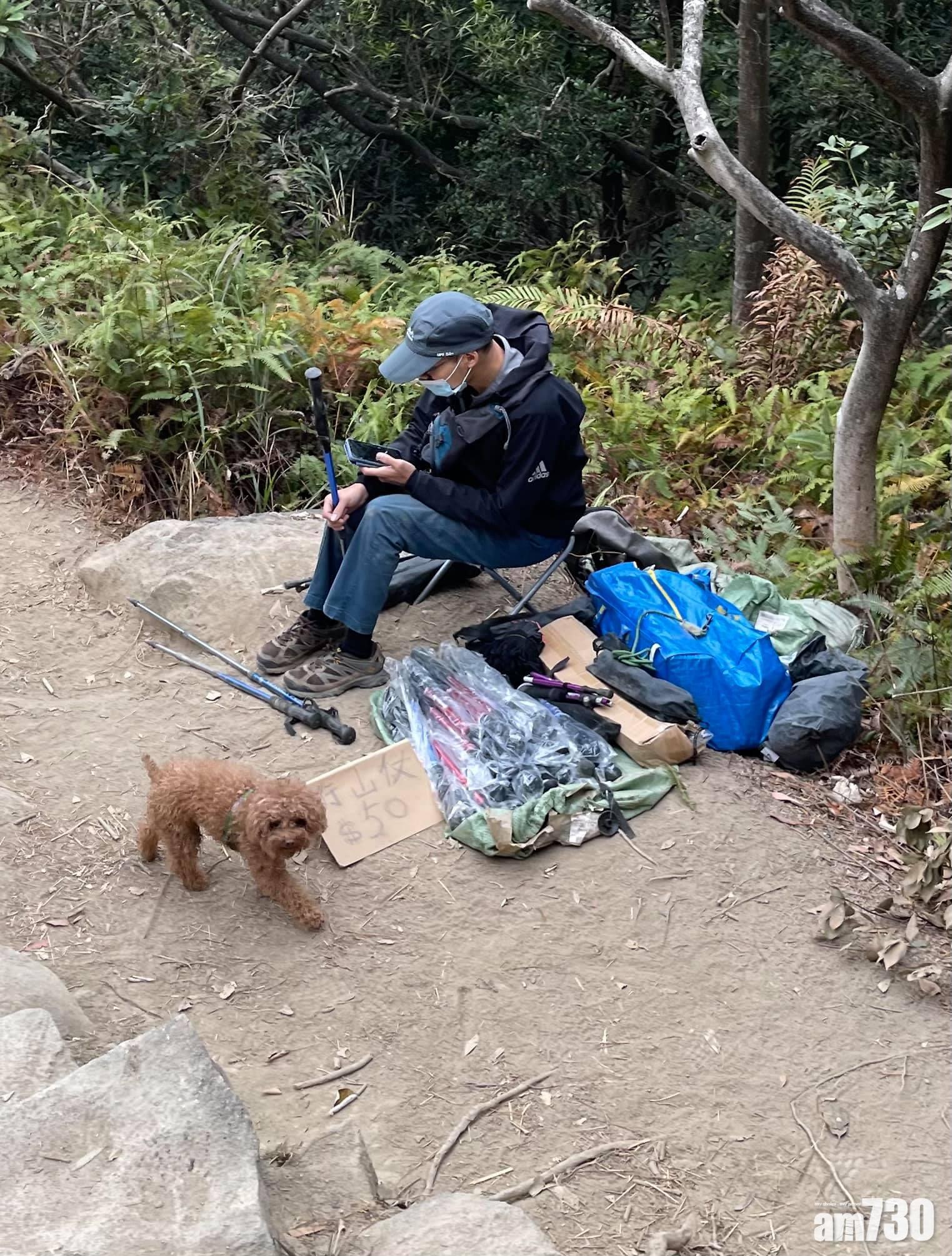 有網友分享山徑遇上賣行山杖商人,嘆生活迫人。(Johnson Poon@香港行山路綫及資訊谷)