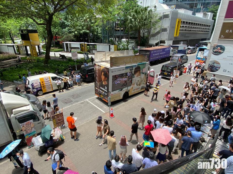 有網民圖文並茂,貼出宣傳車附近迫滿人群拍照的相片,指「平時lunch hr(hour)己經人迫,今日仲迫」。(Gordon Conditioning@FB「X官塘老母群組」)