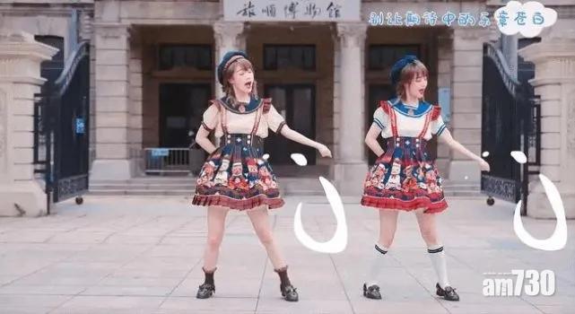 機智的黨妹與友人在旅順博物館前穿日本Lolita服裝跳日本宅舞,遭內地網民圍剿。(互聯網)