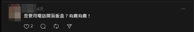 引起網民猜測神秘E餐的「真身」,引起熱議,有網民表示,「(電話)查詢要畀 $58,唔係有嘢食,即係問路 $58」、「E餐係『阿媽家姐(Omakase)』,廚師發板」、「盲盒餐」、「是要用電話開盲飯盒?有趣有趣!」、「電話查詢=專賣尋日賣剩/唔放得耐既快餐收檔」。