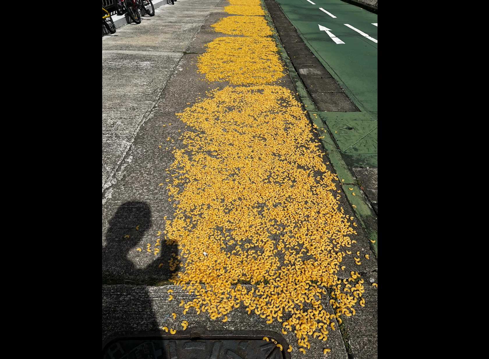 由圖片可見,在單車徑旁有一大堆未煮過的通粉,直接放在行人路上,並無任何布墊著。經過的網民不禁拍下照片,並上載至社交平台Threads問「究竟將未煮過既通粉曬完有咩功效?」