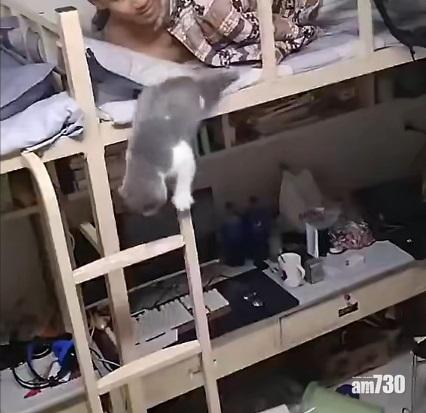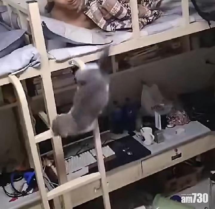 俗語話「貓有九條命」,因經常看到牠們由高處跳下,經過扭動身體,多安全著地,內地有網民分享一條貓咪由上格床落地的影片,但今次貓咪並非由上格床躍下,而是雙手抓著床邊的鐵梯緩緩慢速落地。