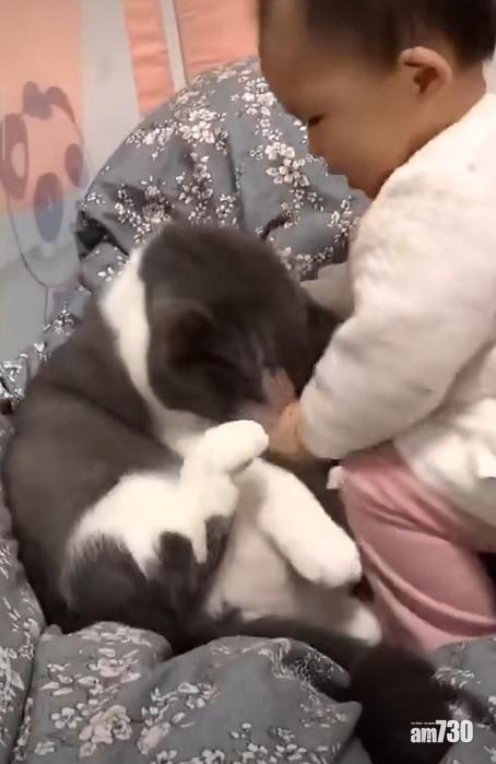 有指養寵物對小朋友有不少好處,如可提高子女責任感、同理心,亦可提供免疫力等,但養孩子的家庭,對寵物又是否有好處呢?內地有網民留言「孩子別養貓,真的對貓不好。」分享的短片是一個估計少於一歲幼童正和一隻肥貓玩耍,其中可以看到幼童輕扯貓耳、按頭、熊抱、以自己身體壓向貓咪,但當稚子坐不穩時,貓咪仍似用手扶小朋友一把。經過「小奴才」不斷「蹂躪」,貓咪除一臉無奈,輕搖尾巴,亦只是輕叫。