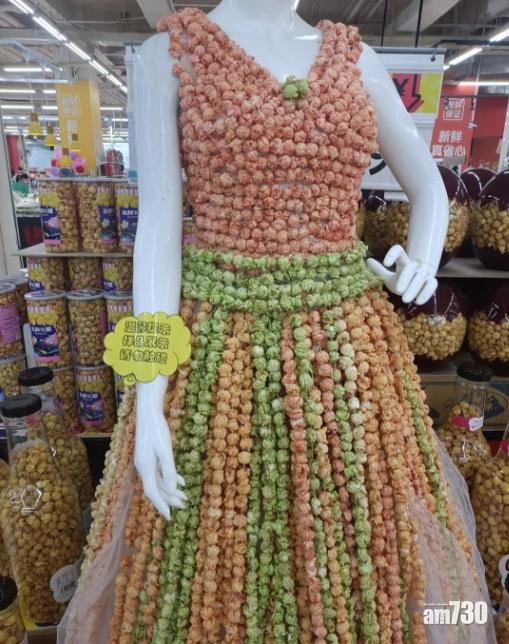 商品之間要搶生意,從產品設計、包裝及宣傳必須令商品吸睛,讓消費者一眼望到並記上心。內地網民分享在超市看到的一幕,發現有個「模特兒」站在超市內,「她」的四周則放了不少大桶的爆谷,特別之處是「模特兒」身穿爆谷背心裙,相信由職員將爆谷逐粒穿起連接而成。