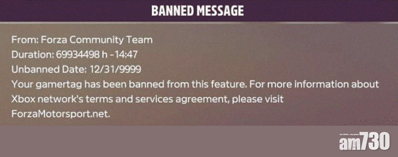 發帖者的朋友無預警下收到官方發出的帳號停權懲罰通知,貼文所附的截圖顯示,該帳號封鎖的停權時間直至西曆9999年12月31日,意味約7,978年後才能解鎖。