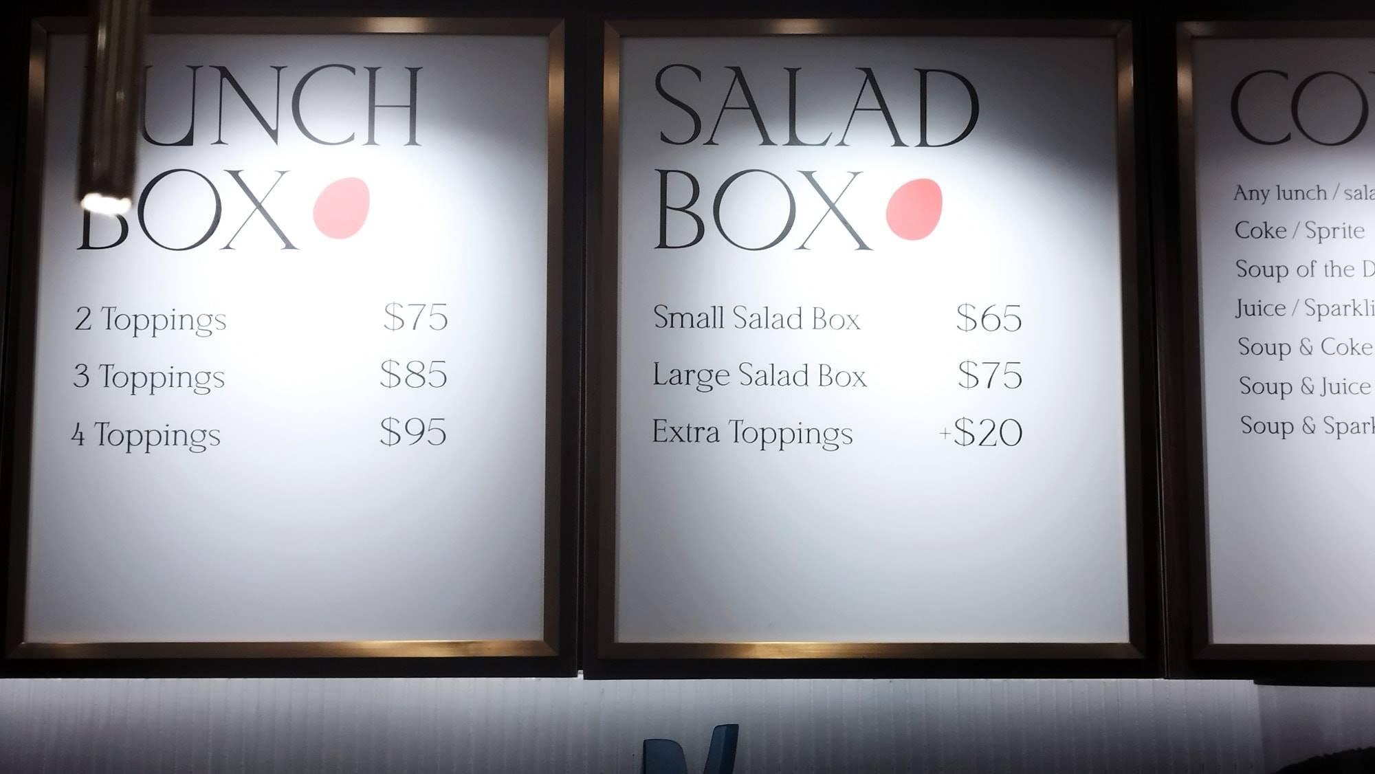 據貼文所見,相關兩餸飯(Lunch Box with 2 Toppings)提供菜式,包括蟹柳絲蒸水蛋、蟲草花蒸雞、紅酒牛腩、鹹蛋蒸肉餅、清炒西蘭花、川味豆腐、日式金菇肥牛等,每周菜單均會更新。