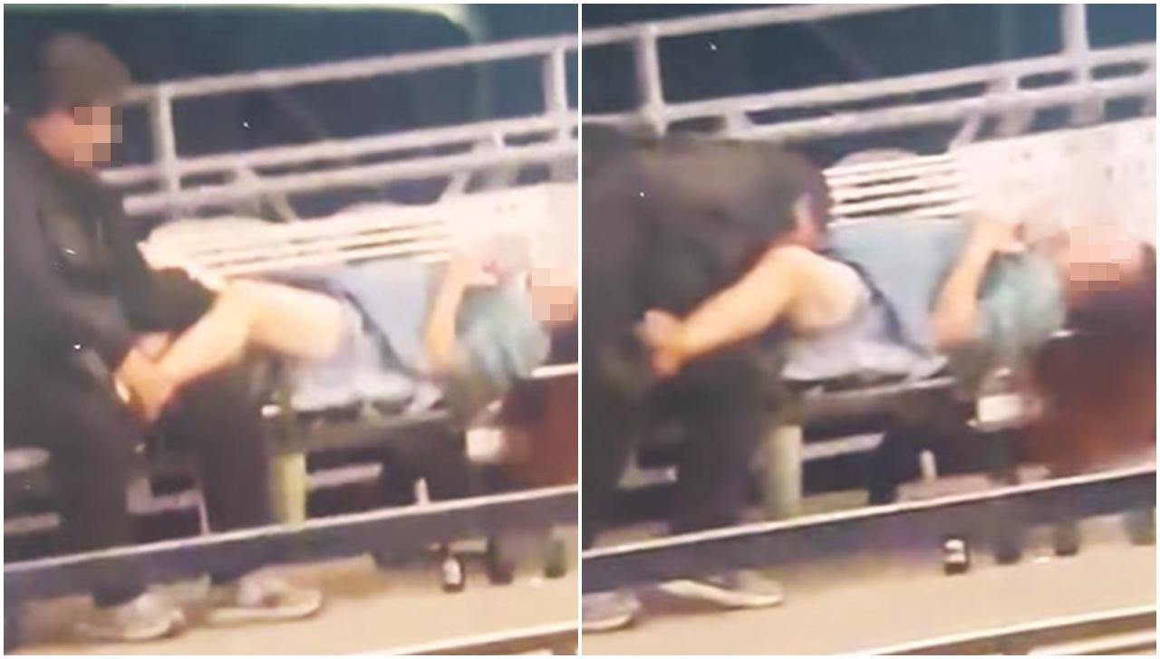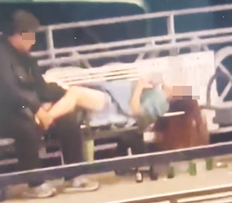 近日社交平台上有人上傳影片,從片中可見一名身穿黑衣黑褲的男子坐在長洲紅燈橋碼頭的長凳上,他把手伸進了躺在身旁、長裙被揭至腰之女子的下體,及後男子環顧四周後,便兩度彎腰把頭伸向女子下體數秒;至於女方左手拿著疑似手機的正方型物品,全程除了不時擰頭、右手捉著自己的頭髮外,未見有其他反應。而在她位置的地上則放置了數支啤酒樽,但未知是否屬於女子。影片到此完結。