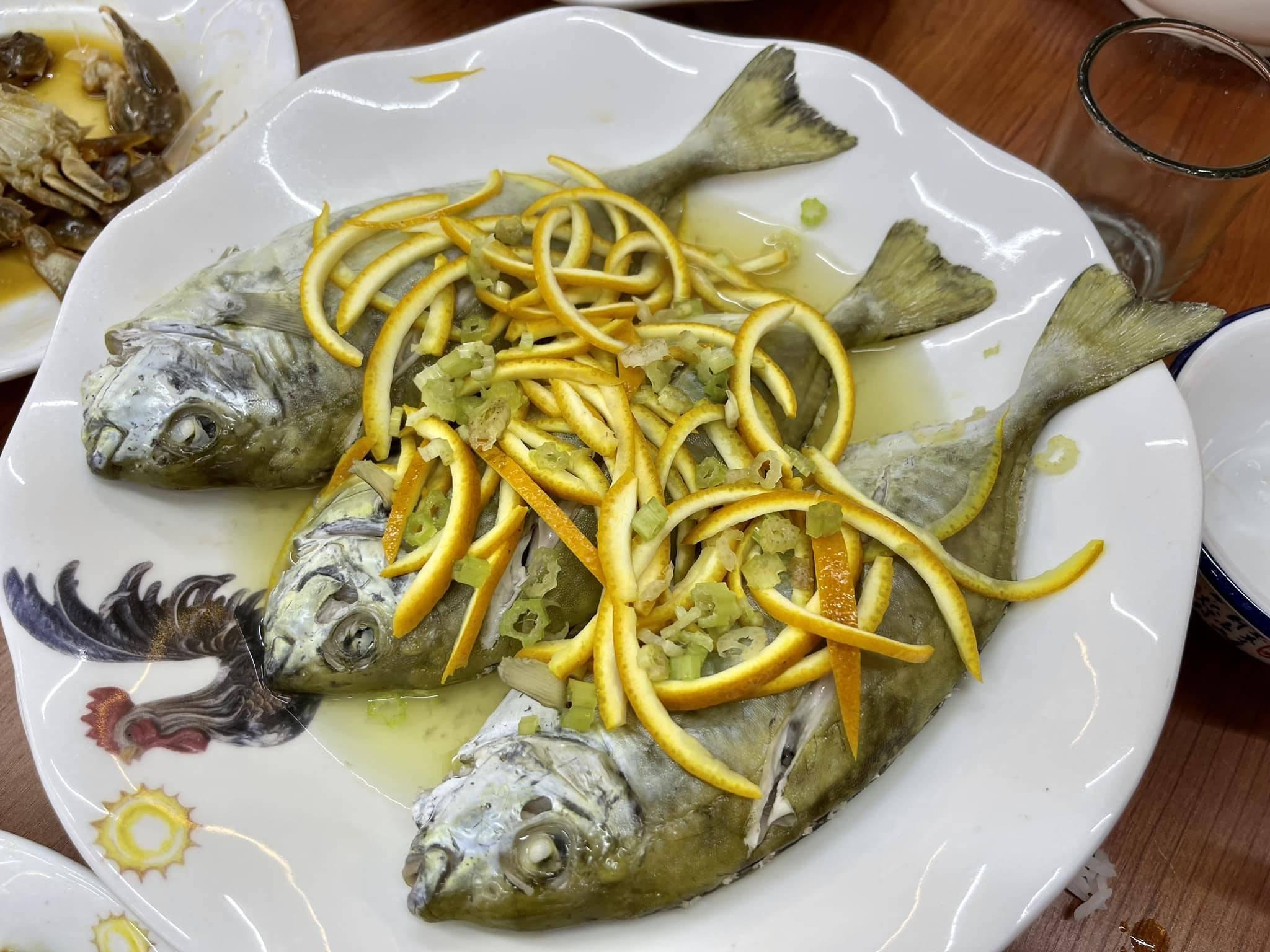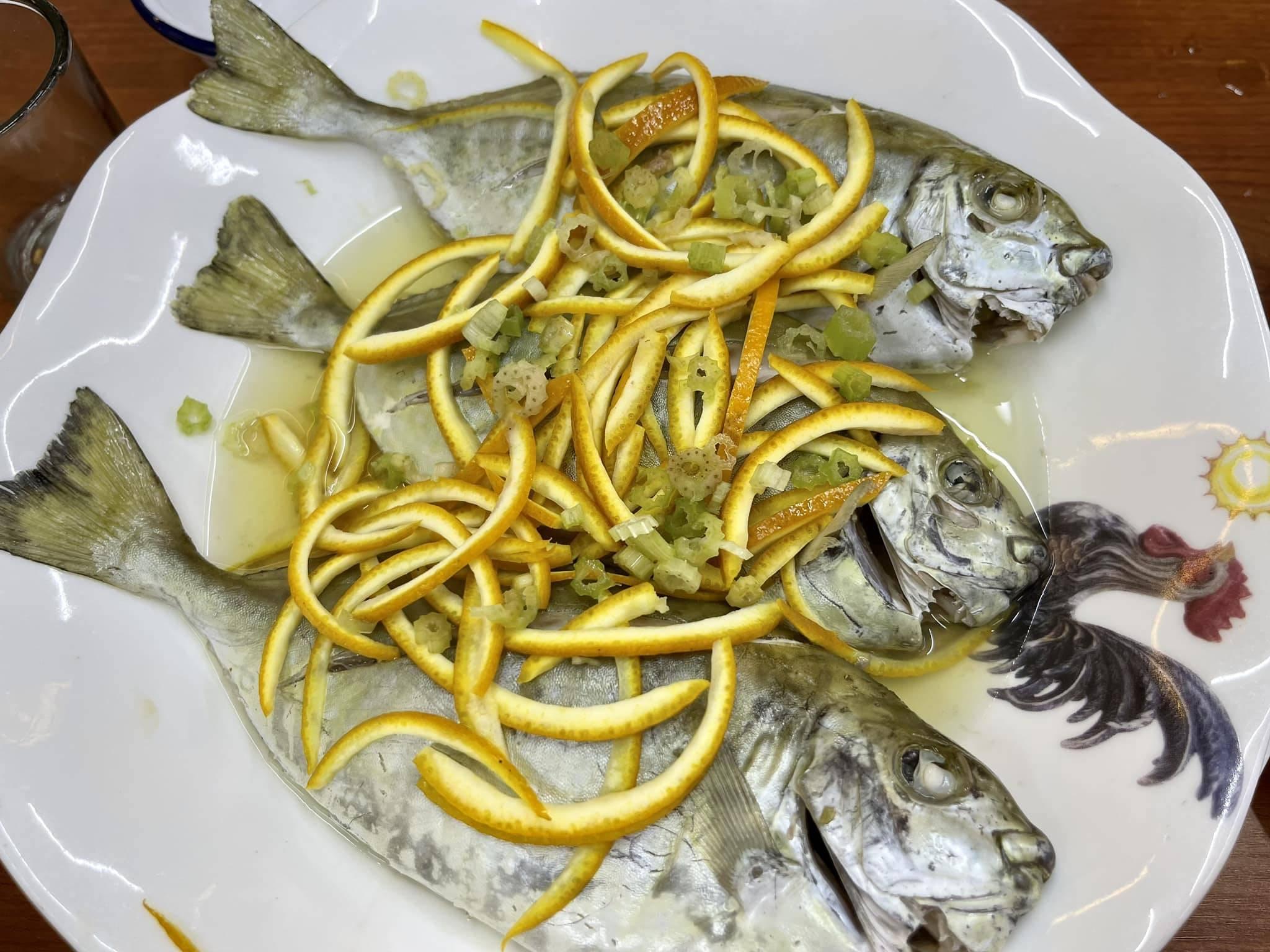 按其上載的相片可見,3條泥鯭整齊排於碟上,大堆新鮮橙皮絲鋪在魚面,與泥鯭一同蒸熟,橙皮之間更可見已切粒的唐芹碎,用作點綴。他更可憐指出,當下留意到樓面,有另一大叔食客正在吃橙,令他不禁擔心泥鯭上的「果皮」來源。