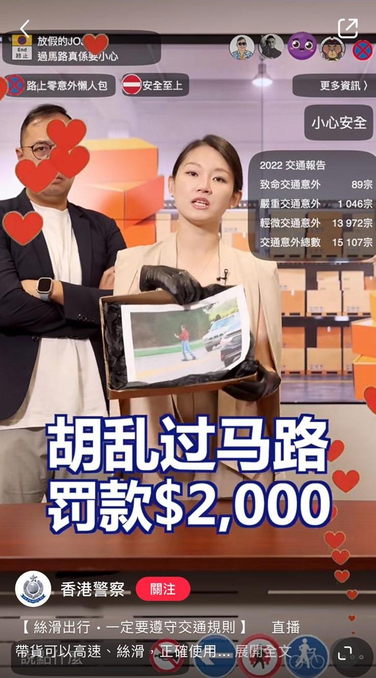 網上熱話|香港警察小紅書扮直播帶貨宣傳交通規則,網民大讚「與時並進」。(香港警察)