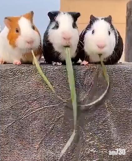 動畫《天竺鼠車車》不少內容令人發笑,內地網民近日亦分享天竺鼠食草的逗趣畫面,並留言「誰能想到這個視頻最後結局是這樣!」畫面是三隻天竺鼠平排正食兩隻草其中左右兩隻食同一條,牠們小嘴左右郁動咀嚼著,長長鮮草迅即變短,當中間的一隻獨享一條草食得更快,而右左兩隻亦快要食完牠們同一條草時,似在玩拔河的畫面;「觀眾」正想像兩隻天竺鼠為爭食而「大打出手」時,怎料中間的一隻突然「出口」,咬向該條未食完的草中段,不單咬斷該草,並用力扯回右邊天竺鼠本已放入口的。