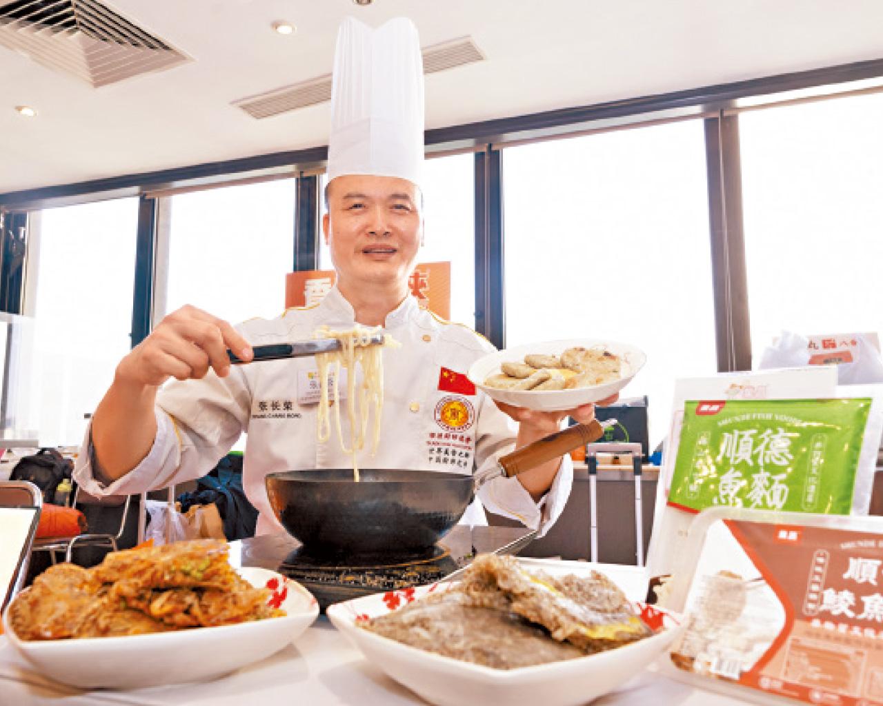 首次參展的「業昌食品」在展會期間推出內地「順德非遺鯪魚產品」之一的「均安魚餅」,其製作技藝代表性傳承人張長榮指,均安魚餅技藝已有140年歷史。是次參展主要想讓順德非遺鯪魚產品「走出順德,邁向國際」,讓港人認識這款具歷史的食品。