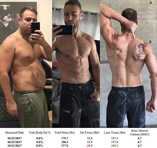 原來他每天僅攝1,100卡路里,不足夠熱燒脂肪;經專家指點一周7天狂操之餘,也吃足麥片蛋白等營養餐,另補充氨基酸及營養品麩醯胺酸,以防肌肉流失。至上月22日,脂肪比例降至8.8%,超額完成,100萬袋袋平安!