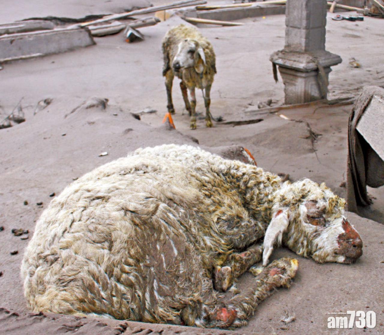 羊隻灼傷,滿身灰泥。