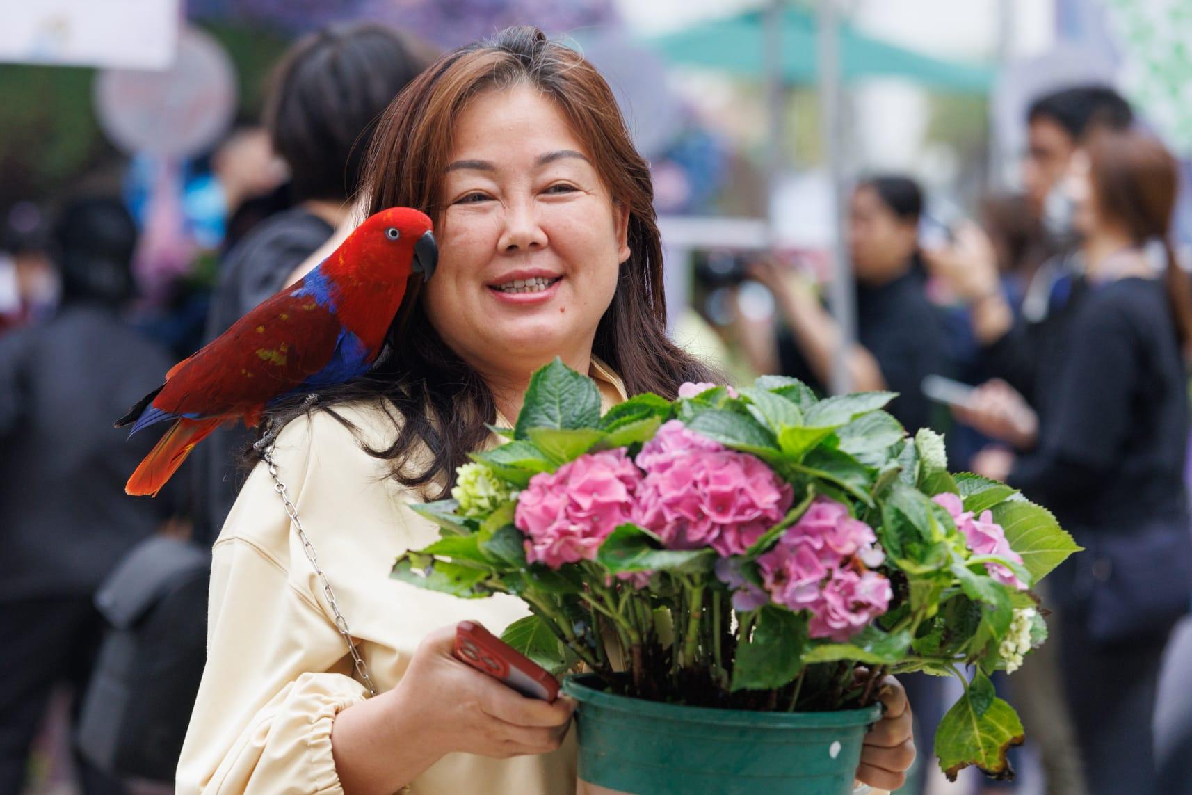 展期最後一日,現場氣氛仍然熱烈,賞花的人流不絕,大批市民趕尾場與花海合照。今年花展主題為繡球花;鬱金花海開的花比首日更豔麗。賣花的攤販亦把握最後機會促銷,有花販5折售花,亦有花販貼出「100元三盆」、「五折任揀」等告示吸引顧客,不少市民賞花後都去揀盆心頭好,檔前車水馬龍。