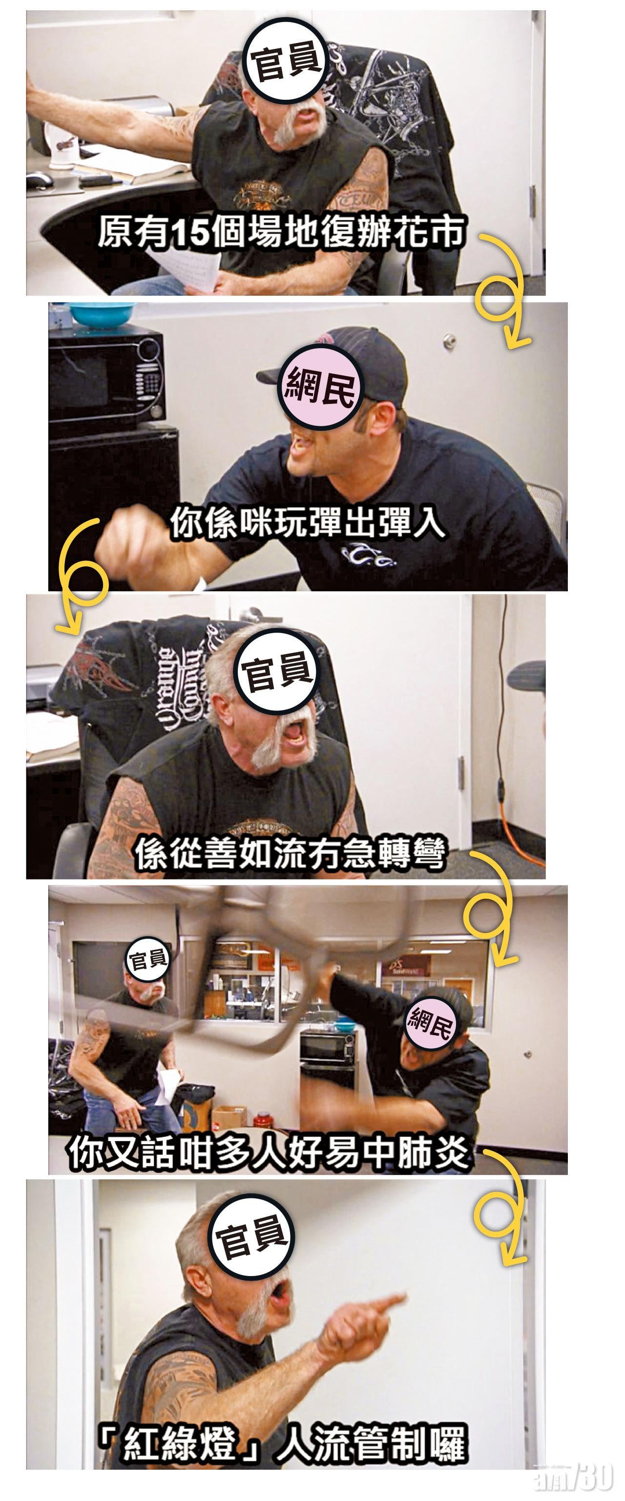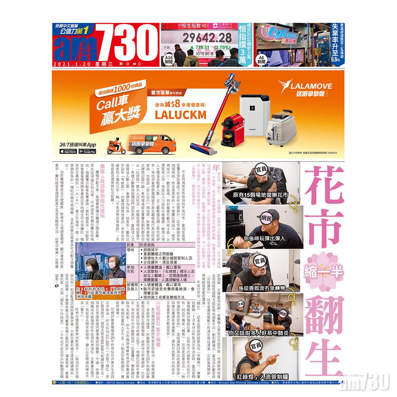 年宵花市「翻生」,原址復辦。政府昨公布最新安排,花市將縮減一半規模,原先投得攤檔的檔主可重新抽籤、免費使用檔位。15個場地會按大小劃分細區,並以紅外線儀器檢測入場市民體溫及點算人數,實施人流管制,數據會上載至特設網頁,以「紅綠燈」式標示人流情況,供市民考慮前住。食物及衛生局長陳肇始否認政府政策「急轉彎」,稱是從善如流。