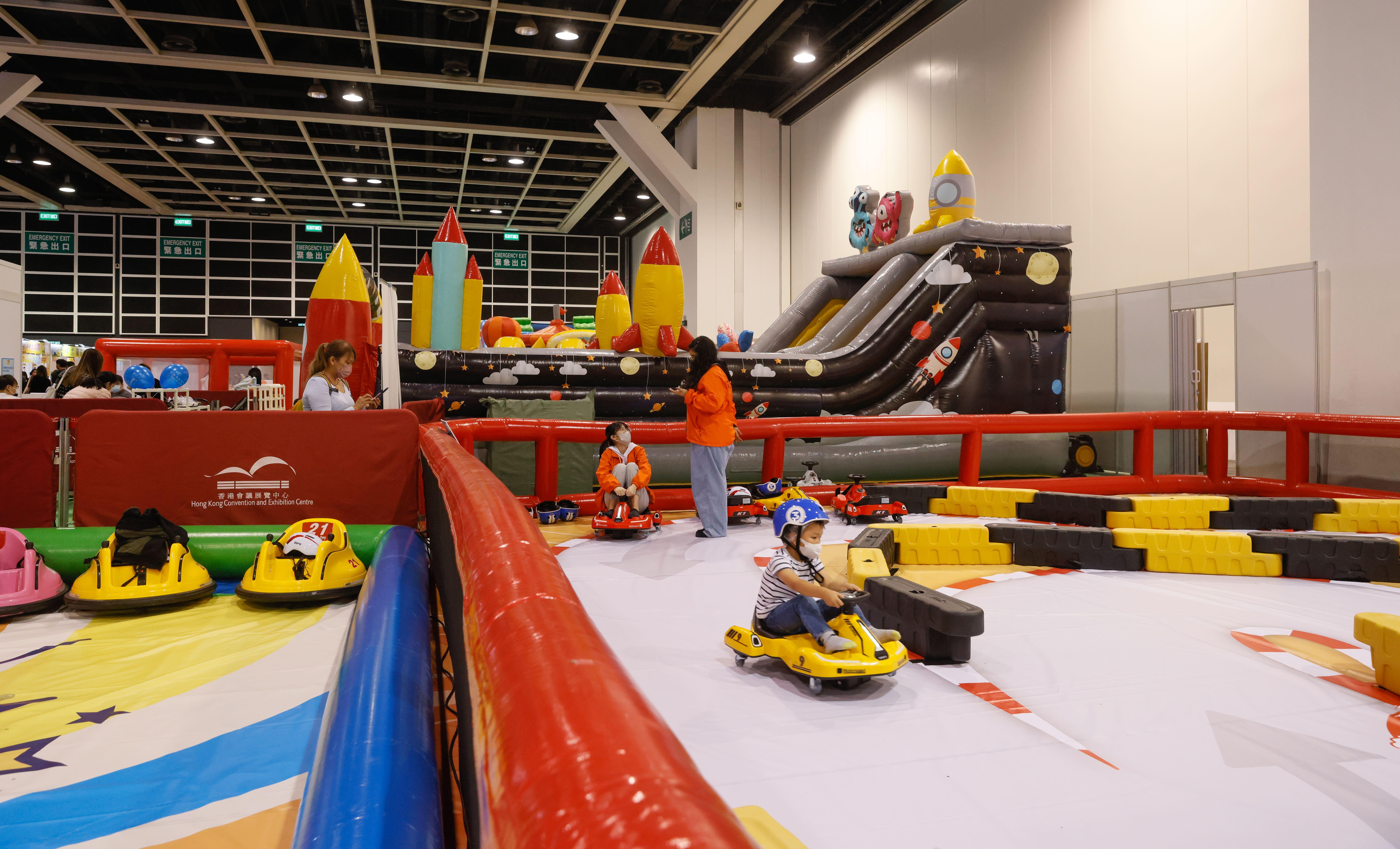 今年荷花BB展設立近5,000呎的「JUMP JUMP歷奇放電區」(荷花BB展場內Q01),當中有6大特色check points,包括:「太空探險區」、「朱古力熊仔幻想區」、「馬戲團世界」、「越野障礙賽」、「木粒寶藏池」、「電動碰碰車及電動飄移車場」。此區有小朋友至愛的充氣彈彈床、充氣滑梯、電動碰碰車場、飄移車場及木粒寶藏池,讓小朋友可以盡情放電!