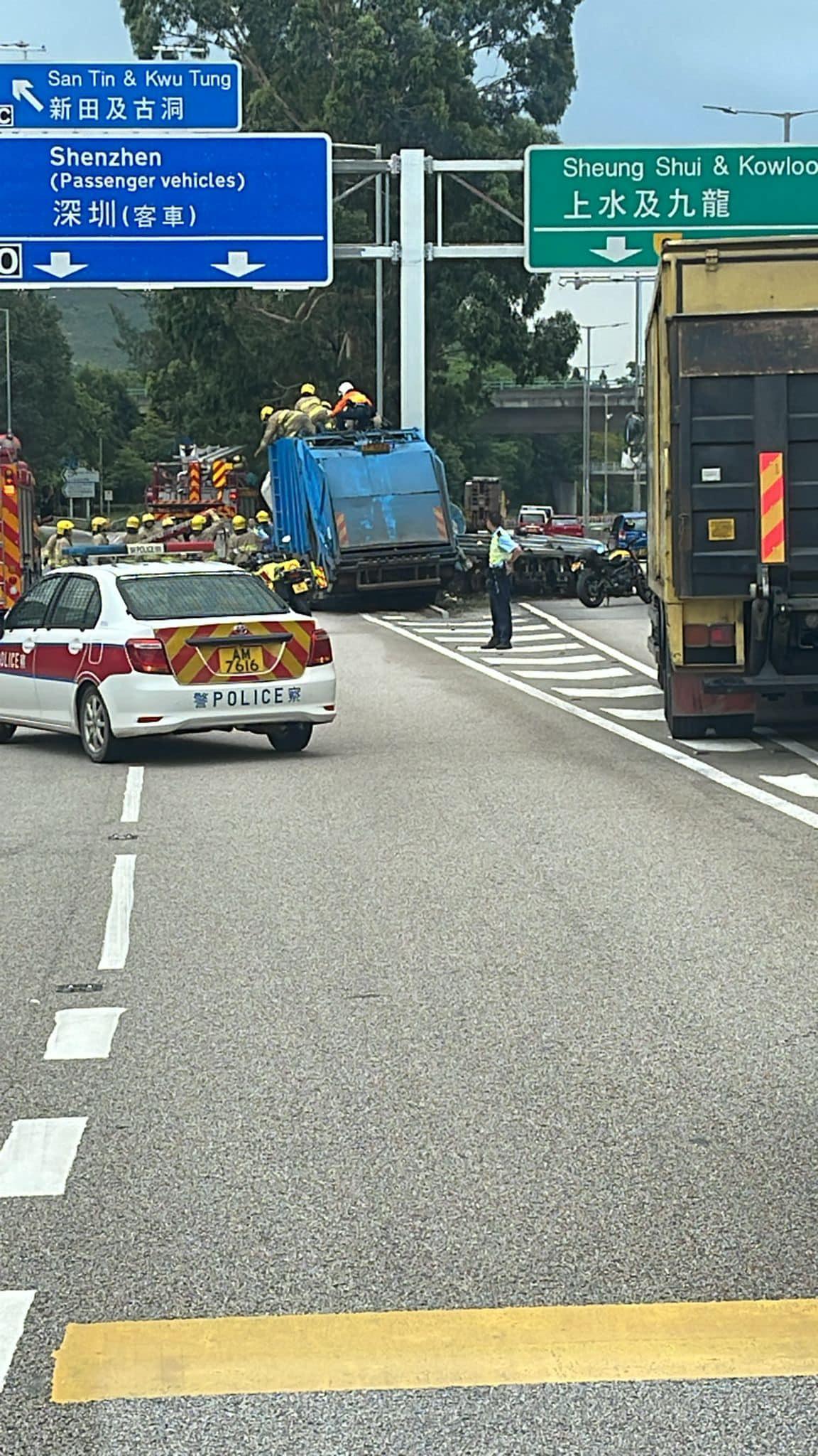 今日(28日)中午12時58分,一輛垃圾車沿落馬洲新田公路往上水方向行駛、駛至近新田交匯處時突然失控,猛撼向路中風琴式防撞欄,將它掃到右方再直撼「龍門架」鐵柱,66歲司機重傷昏迷,被困車內。
