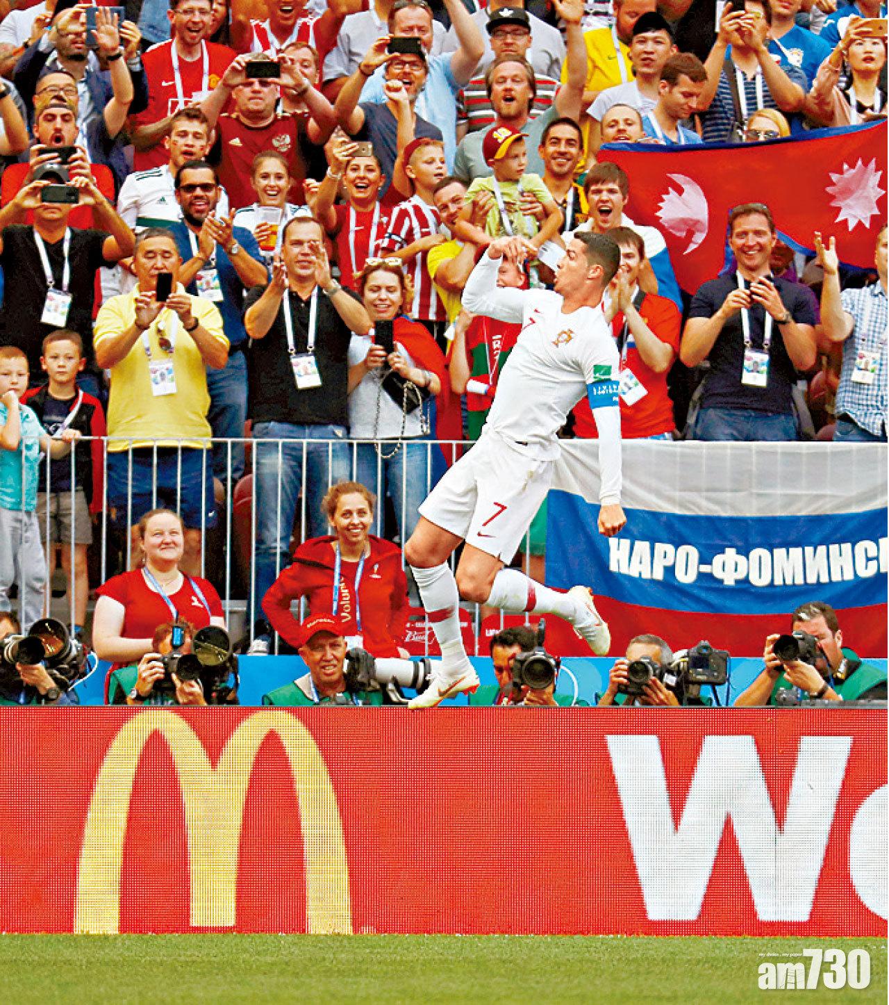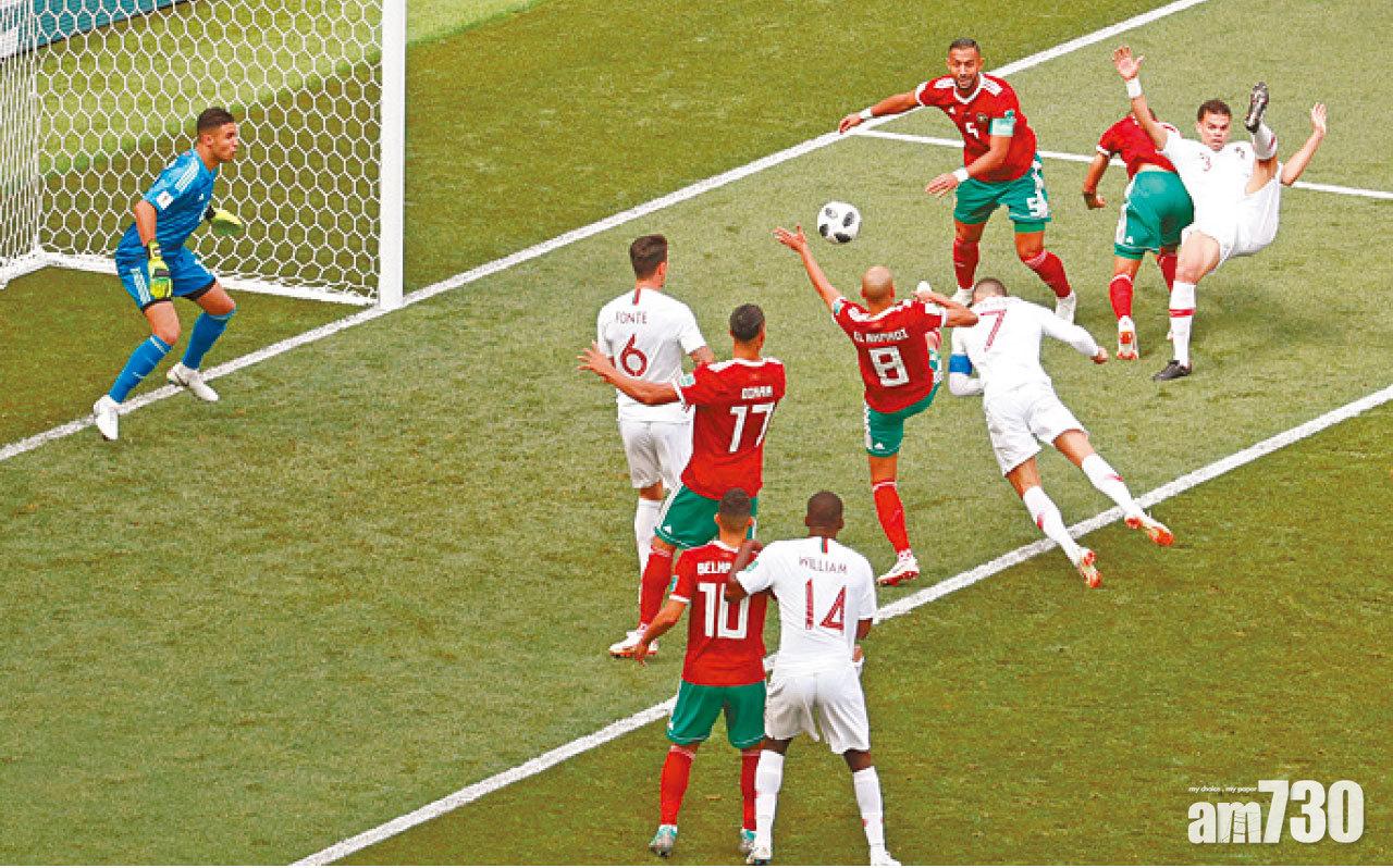 B組次輪賽事,葡萄牙對摩洛哥開賽僅4分鐘,C朗拿度憑把握一次角球攻勢,接應傳中門前衝頂入網,極速為葡軍先開紀錄,並取得今屆賽事第4個入球。無分在手的摩洛哥之後積極搶攻,但並未構成太大威脅,反而葡軍於上半場中後段有數次入球機會,包括C朗拿度射門柱邊出界,未能將比數拉開。