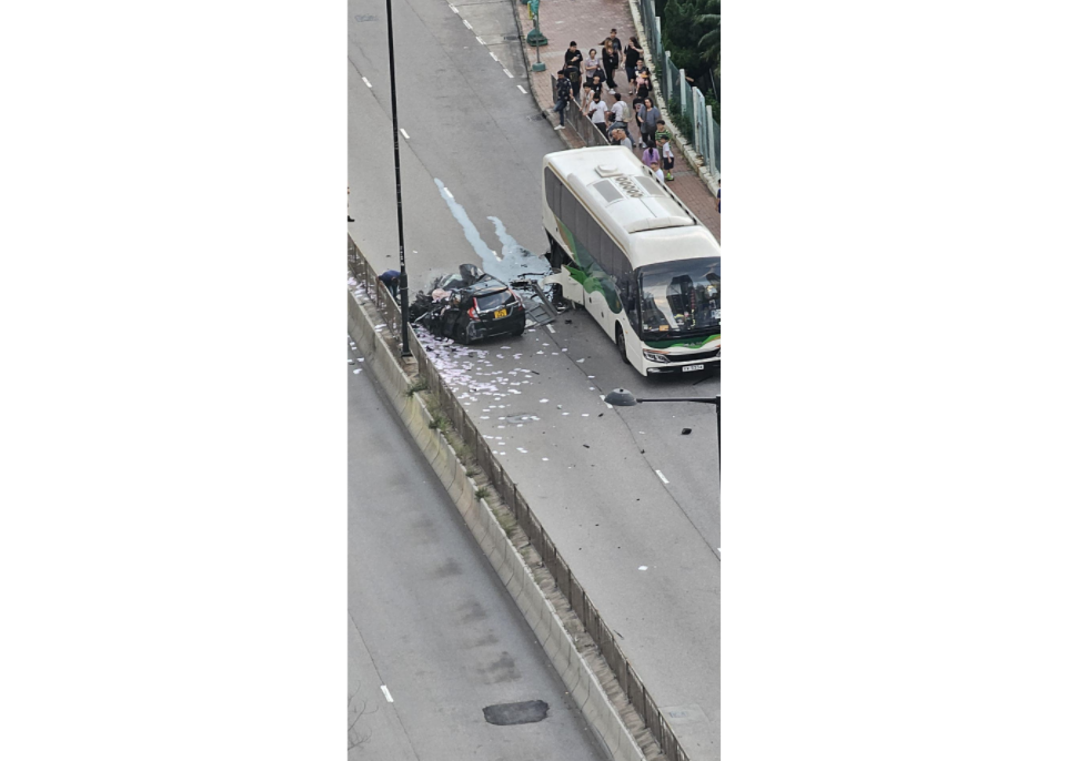 私家車撼旅遊巴。(FB「馬路的事討論區」)