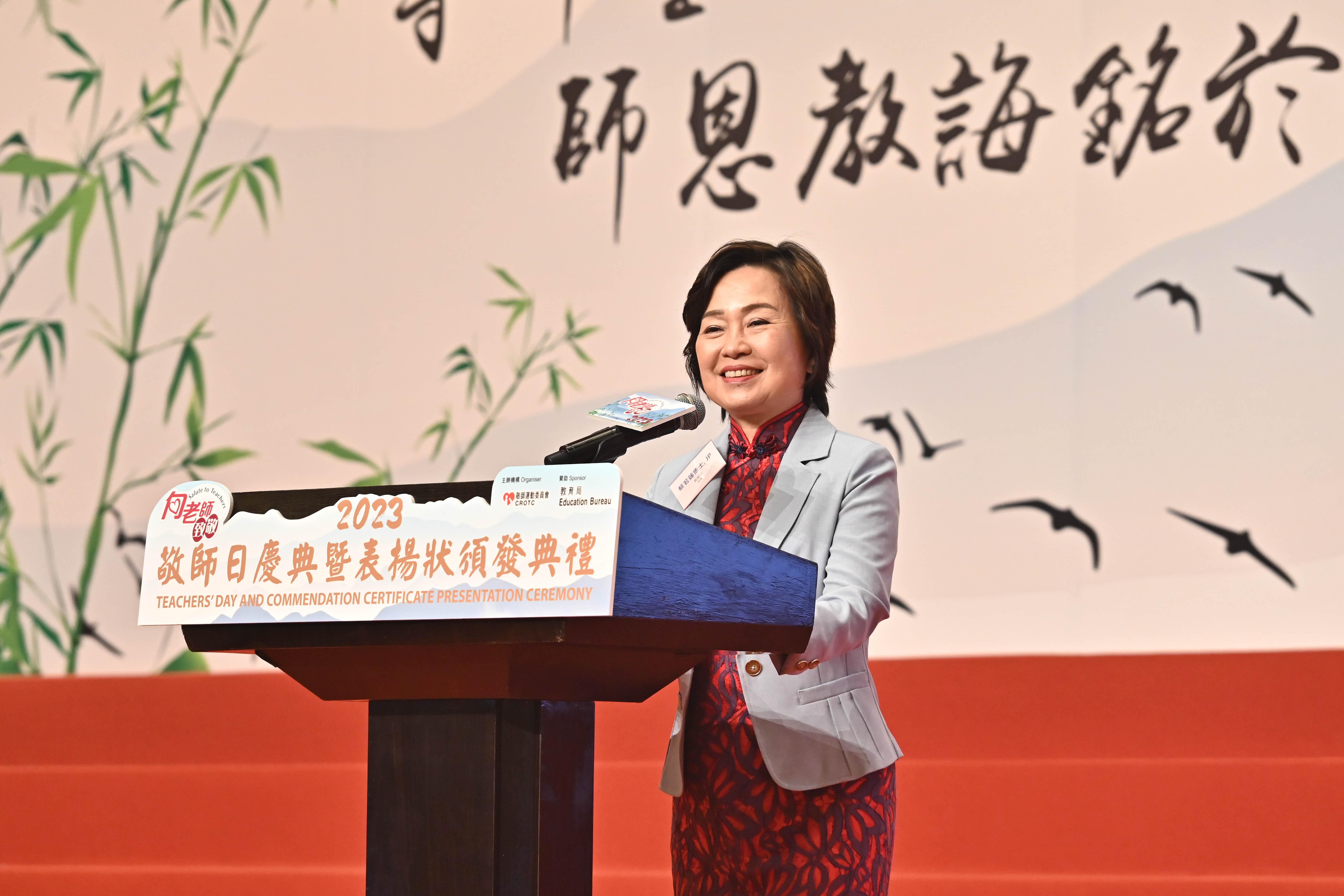教育局局長蔡若蓮出席敬師日慶典暨表揚狀頒發典禮,今年有超過1,500名老師獲嘉許,為歷屆的第2高。蔡若蓮致辭時表示香港正處於由治及興的新階段,人才是香港發展的動能,相信培育人才是最關鍵的一環,更形容儲備人才比儲備外匯更重要。她認為未來要建基於一國兩制的優勢,發揮香港高度國際化、多元化的優勢,為國家2035年實現教育現代化的目標,貢獻香港力量。
