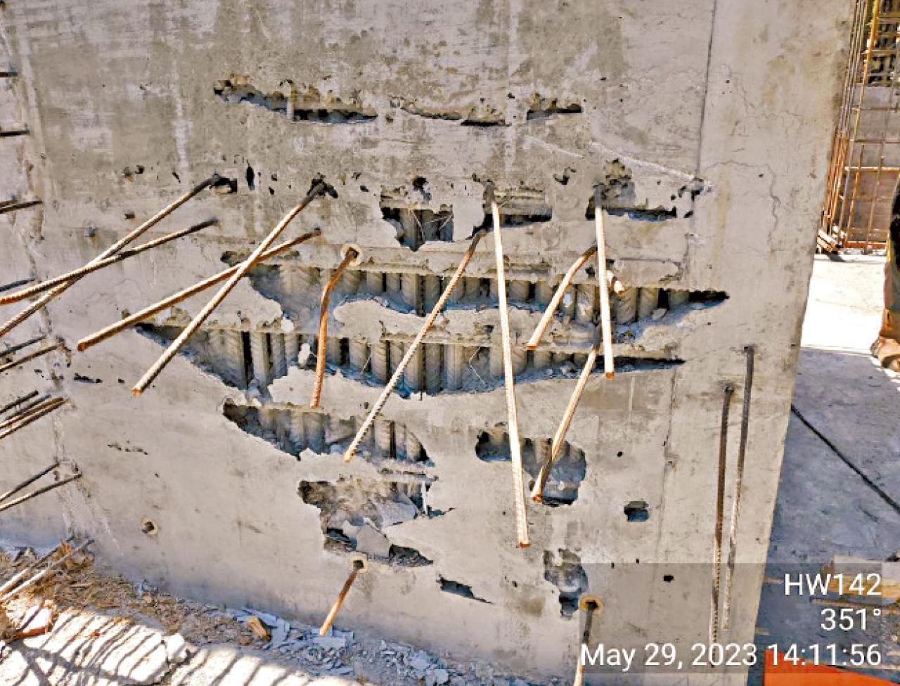 香港大學校園擴建工程懷疑出現質量問題。建築工程師潘焯鴻日前在社交網站發文和相片,揭正動工建築物部分樑柱、牆身石屎現「蜂窩狀」,部分更鋼筋外露,擔心會影響結構安全。港大昨確認事件,並稱今年4月底首次發現混凝土出現問題,曾向承建商發多份現場備忘錄和警告信,但無明顯改善,已更換負責混凝土工序的團隊和監督,以及承建商的工地工程師。屋宇署昨巡視發現部分鋼筋混凝土構件欠妥,但認為並無明顯結構危險,已要求註冊結構工程師提交報告。
