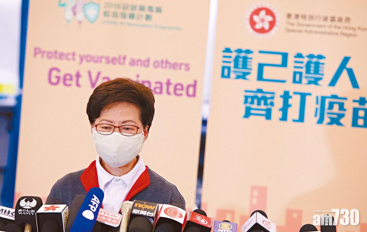 林鄭月娥昨接種疫苗後回應事件。(蘇文傑攝)