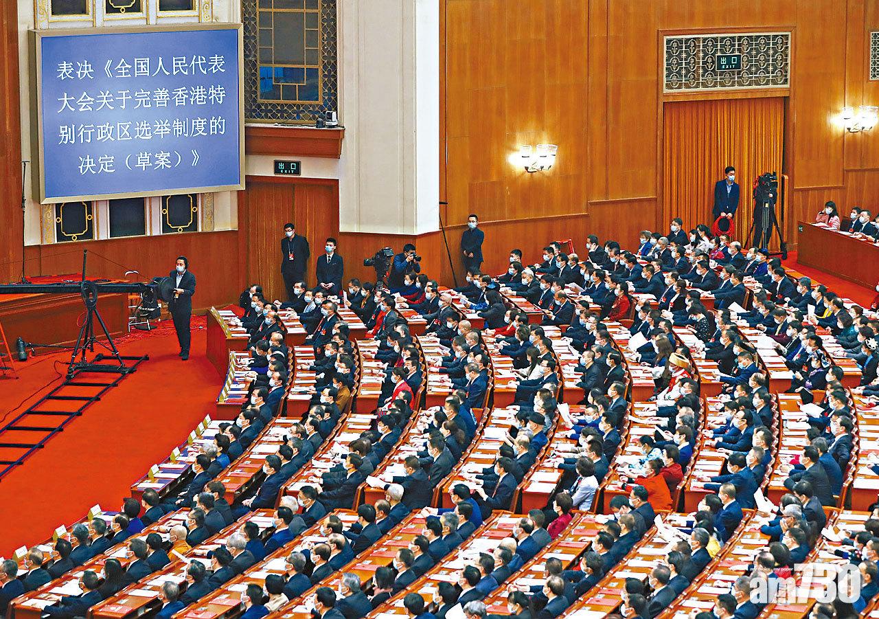 全國人大昨午以2,895高票(1票棄權、0票反對)通過「完善香港選舉制度」的決議。新華網亦隨即發稿,指此決議是繼落實《港區國安法》後的重大舉措,香港的選舉制度包括特首、立法會的產生辦法,亦是香港政制的重要部分,應當符合「一國兩制」方針,符合香港實際情況,「確保愛國愛港者治港」。