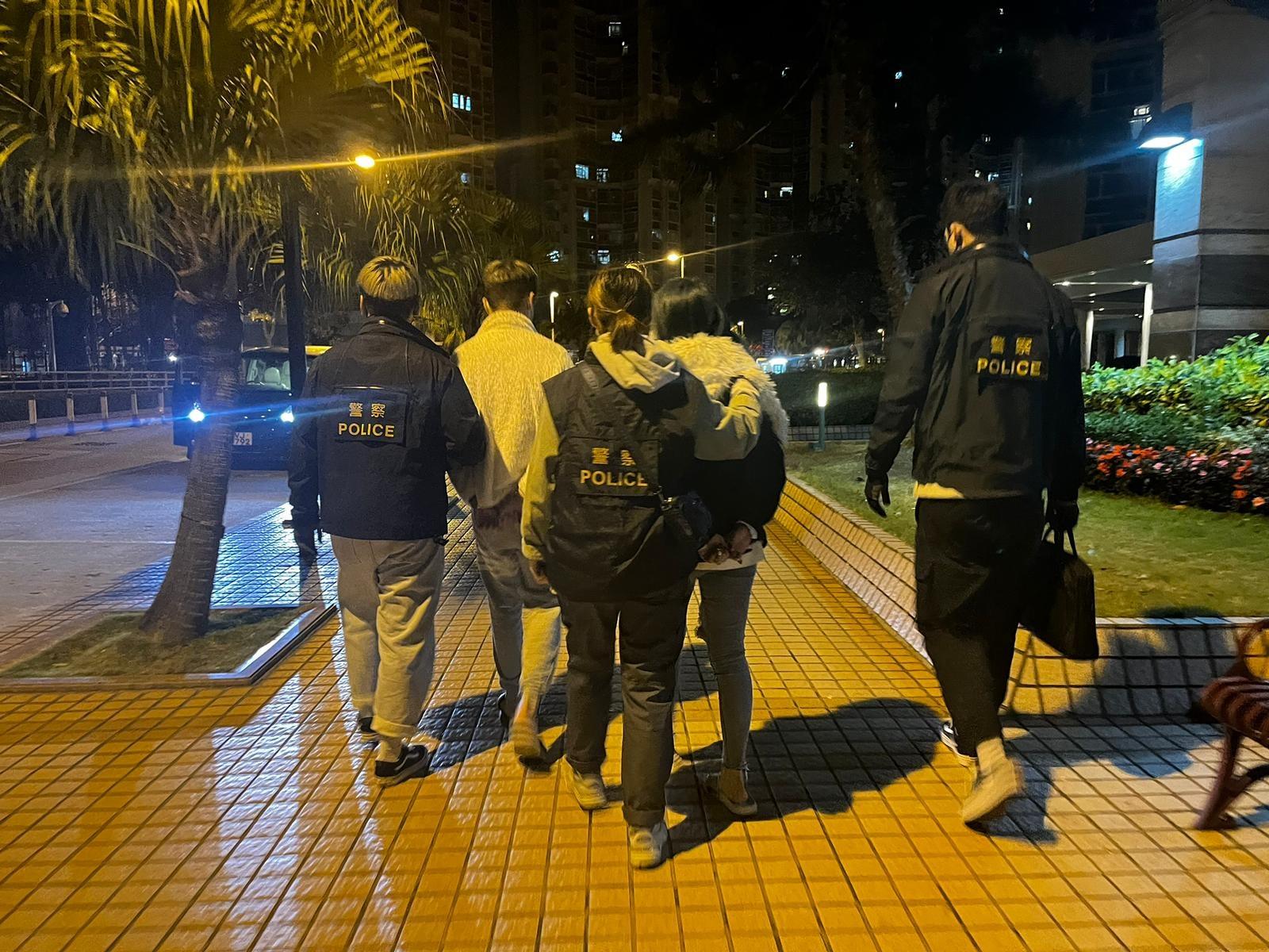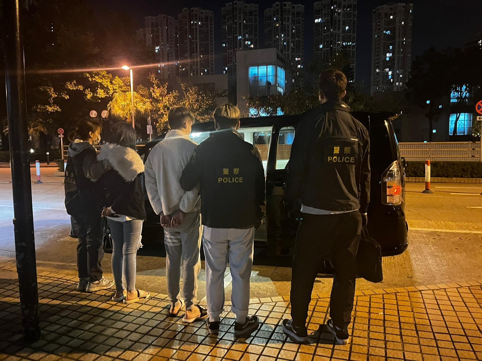 警天水圍掃毒檢市值5萬元可卡因,拘4年輕男女。(警方圖片)