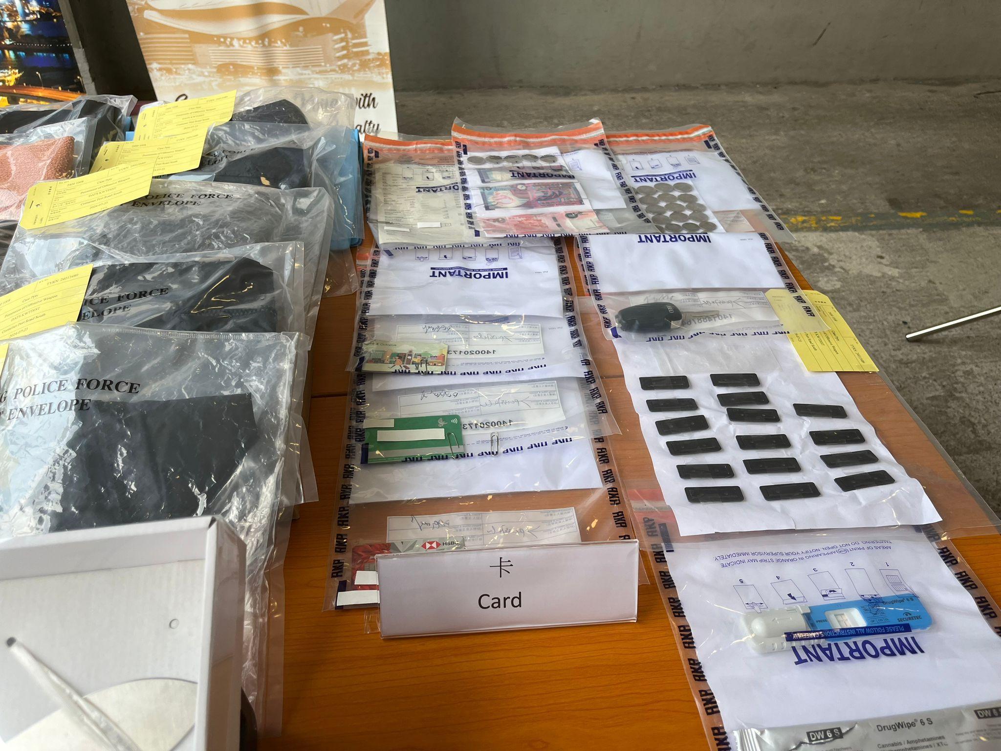 被捕人士同為38歲,屬情侶關係。兩人涉嫌管有攻擊性武器、盜竊、藏毒、駕駛未獲發牌照的車輛、停牌期間駕駛、駕駛時沒有第三者保險、毒後駕駛及拒絕提供血液樣本以作化驗。