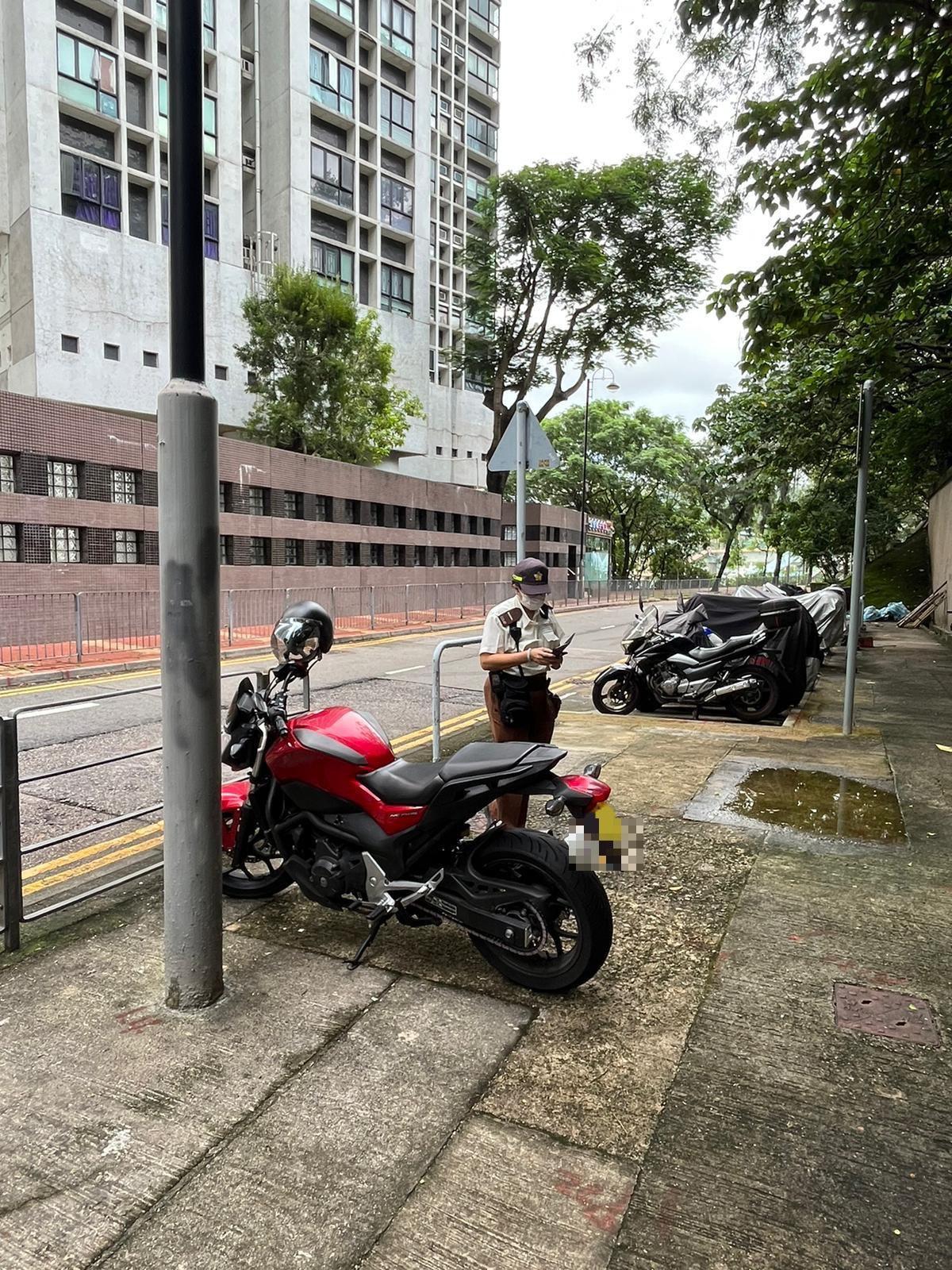 警荃灣區打擊電單車違泊等,兩日發1180張「牛肉乾」。(警方圖片)